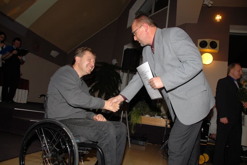 Tělesně postižení sportovci R. Běleš, M. Černá, L. Kuncová, M. Pipek, J. Štiak (cenu přebírá pan Z. Šebek)