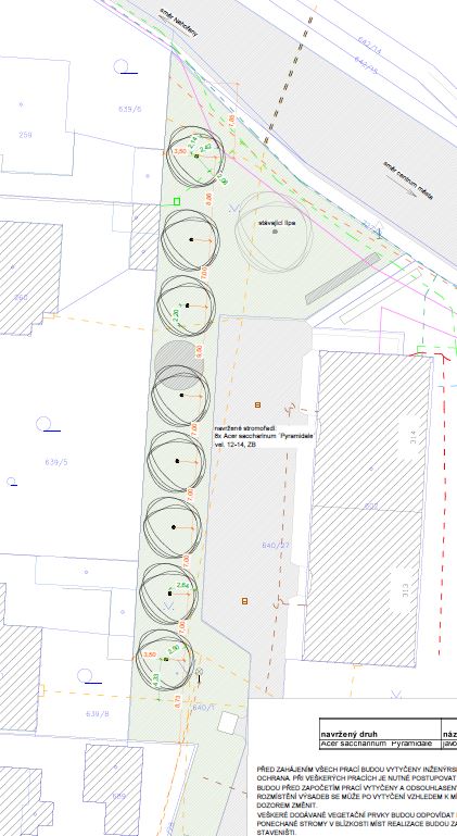 V lokalitě sídliště Luštinec bude do travnatého pásu oddělujícího sídliště od rodinných domů se zahradami vysazeno stromořadí 8 kusů javorů stříbrných s kuželovitě rostoucími korunami (Acer saccharinum ´Pyramidale´). Tyto stromy dobře snáší městské prostředí a po zapojení výsadeb přistíní nedaleký bytový dům a jeho parkoviště a zlepší tak místní mikroklimatické podmínky. Na druhou stranu oddělí zahrady rodinných domů od pohledů z bytového domu a zajistí tak majitelům pozemků větší soukromí.