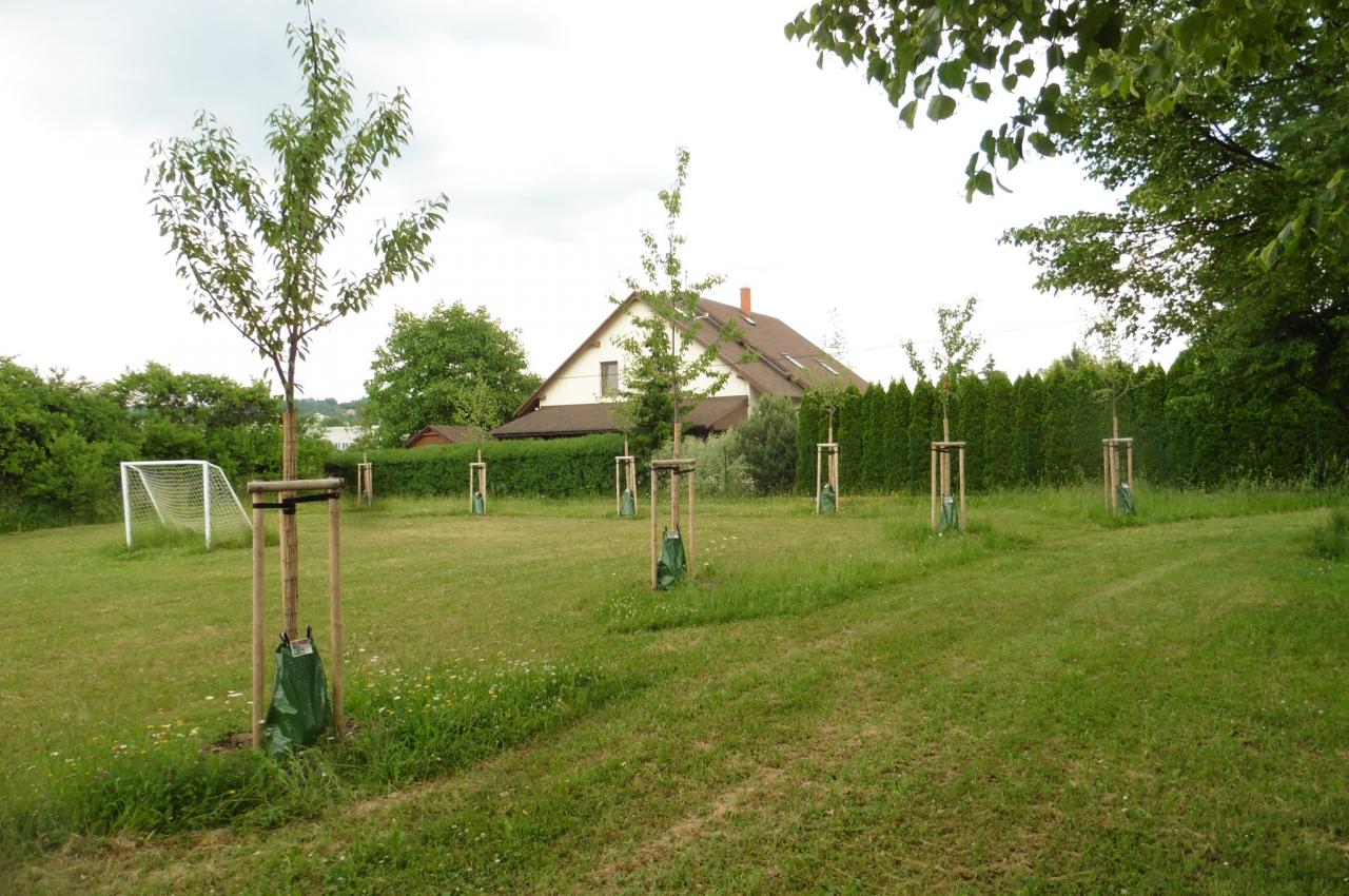 Do prostoru u ulice Okružní bude vysazeno celkem 11 kusů stromů. Po východní straně oddělí travnaté hřiště od soukromé zahrady s rodinným domem stromořadí 5 kusů hlohů slívolistých (Crataegus prunifolia ´Splendens´). Dále budou podél jižní hranice v nepravidelném sponu rozmístěny 4 kusy třešní ptačích (Prunus avium) a 2 kusy okrasných jabloní (Malus floribunda). Třešně i okrasné jabloně svým vzhledem navazují na ovocné stromy v okolních zahradách u domů, svým kvetením a barevnými plody zatraktivní dané místo. Rozmístění stromů bylo voleno tak, aby nezasahovaly do ploch pro hry, ale zároveň zde vytvořily příjemný stín.