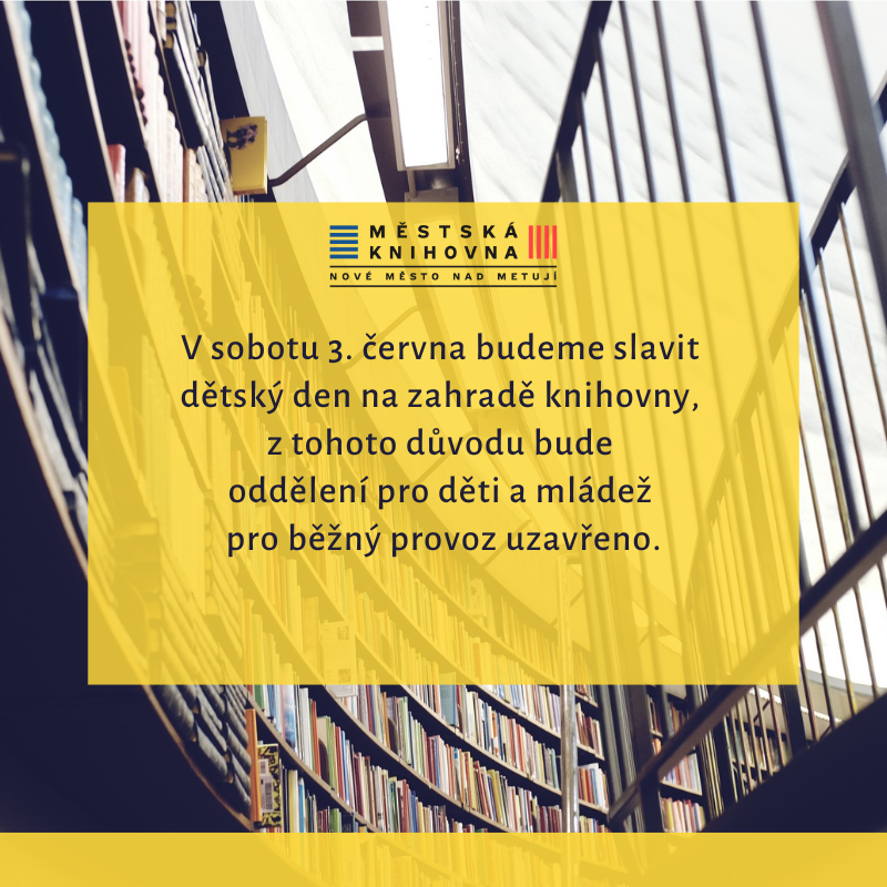 Dále bude z důvodu nemoci ve čtvrtek 1. června oddělení pro děti a mládež uzavřeno.