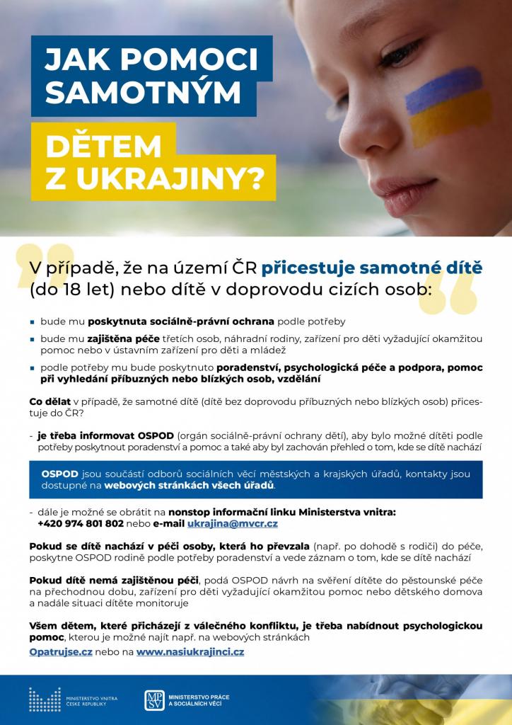 Pro případ, že se k vám dostane dítě mladší než 18 let bez zákonného zástupce, připravilo MPSV ČR informační leták se základními postupy - nejdůležitějším krokem je informovat OSPOD.