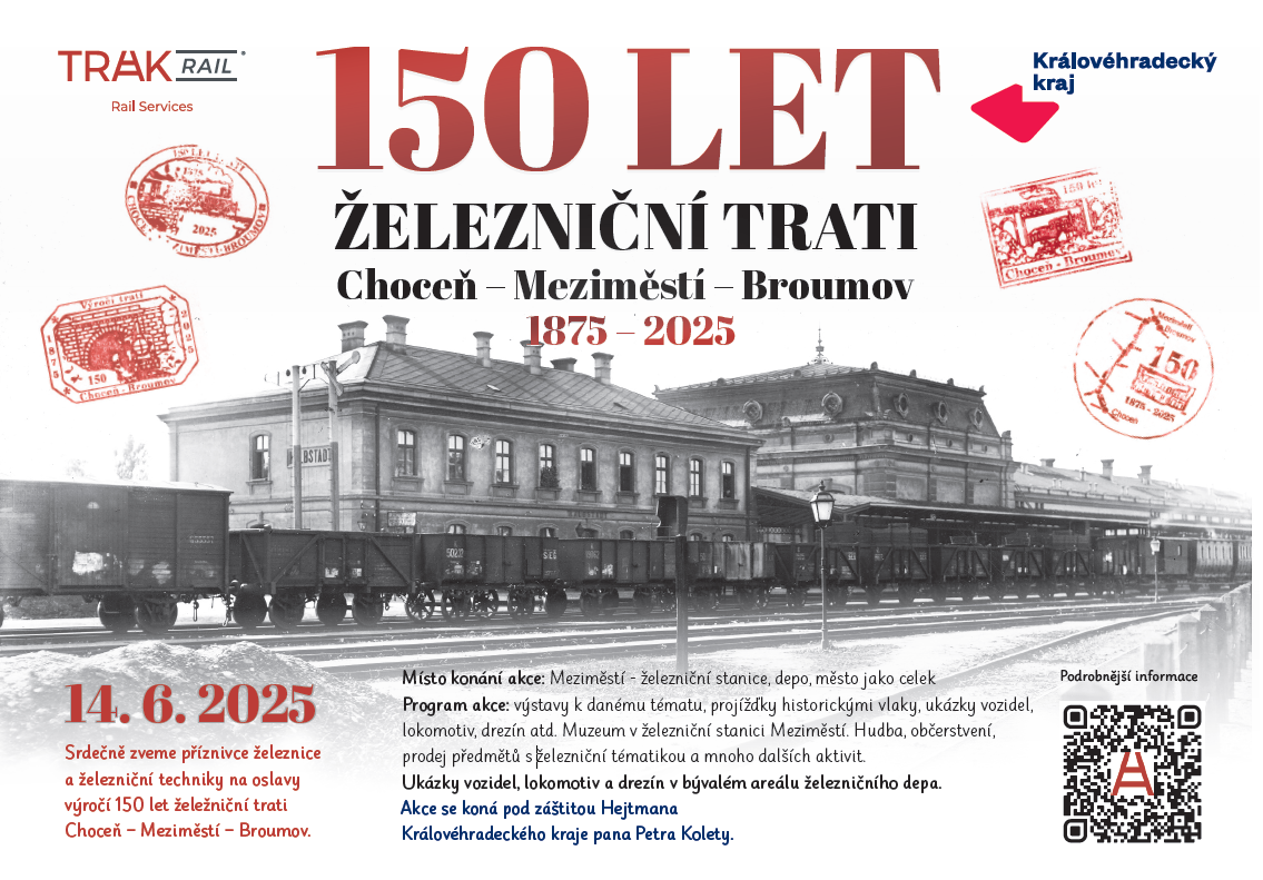 Přijďte zavzpomínat na dobu parních lokomotiv a oslavit 150 let naší železniční tratě, ale také se dozvědět více o její budoucnosti. To vše vás čeká 14. června v Meziměstí, kam jste srdečně zváni.