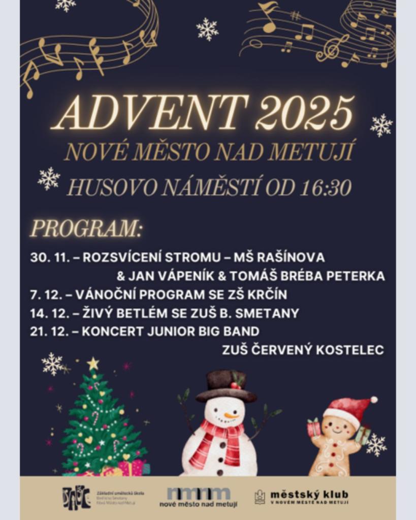 - 11.12.: Adventní koncert v Husově sboru (17:00) – ZUŠ, pěvecký sbor Malíček