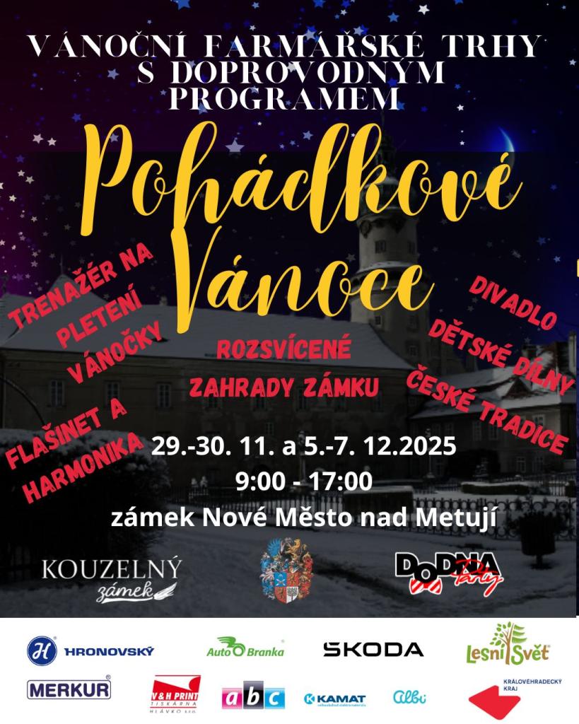 - 29.–30.11. & 5.–7.12.: Vánoční farmářské trhy, Pohádkové Vánoce (zámek)
