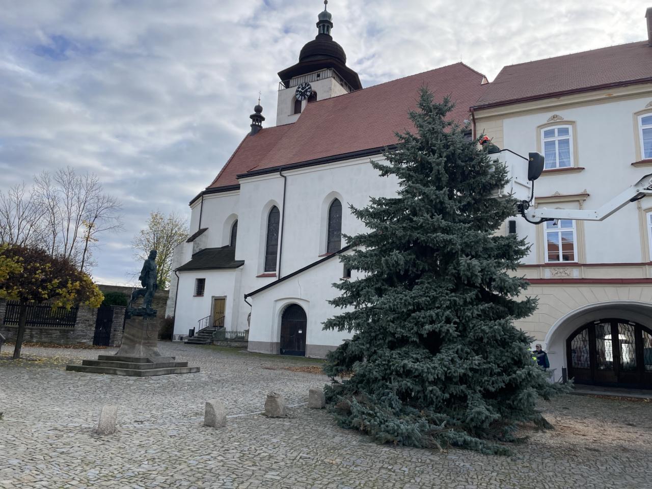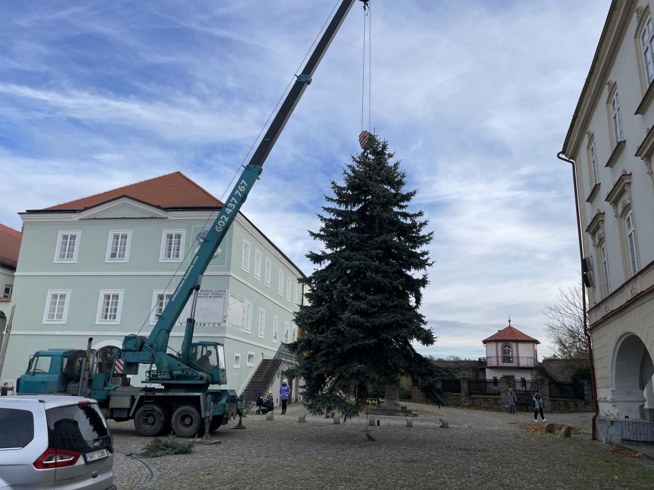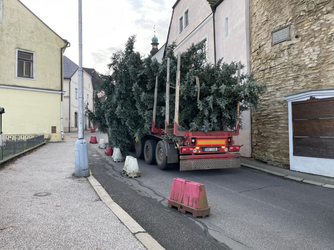 V pondělí 13. listopadu v 7.00 hodin začala cesta novoměstského vánočního stromu z Třešňové ulice na Husovo náměstí. Díky skvělé spolupráci městských Technických služeb a Městské policie byl strom uříznut a převezen na své obvyklé místo u Kostela Nejsvětější Trojice. V příštích dnech bude pracovníky Technických služeb ozdoben a v neděli 3. prosince při prvním adventním zpívání bude v 16.30 h. slavnostně rozsvícen. Strom darovala rodina Novotných. Byl vysazen v roce 1978, avšak v současné době již začal ohrožovat přilehlý přívod plynu, tak bylo rozhodnuto o jeho pokácení. Děkujeme, že byl darován městu a poslouží jako novoměstský vánoční strom.