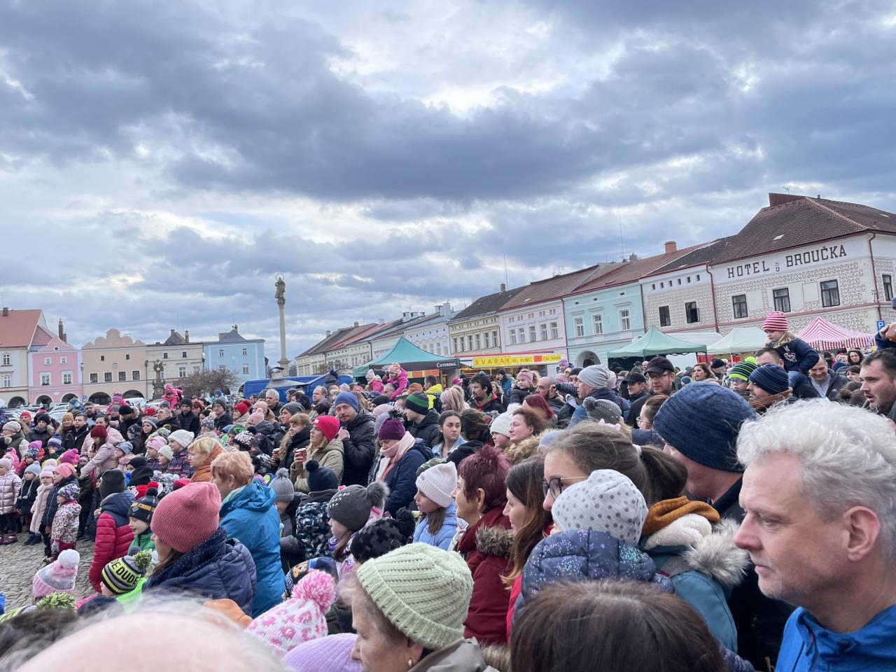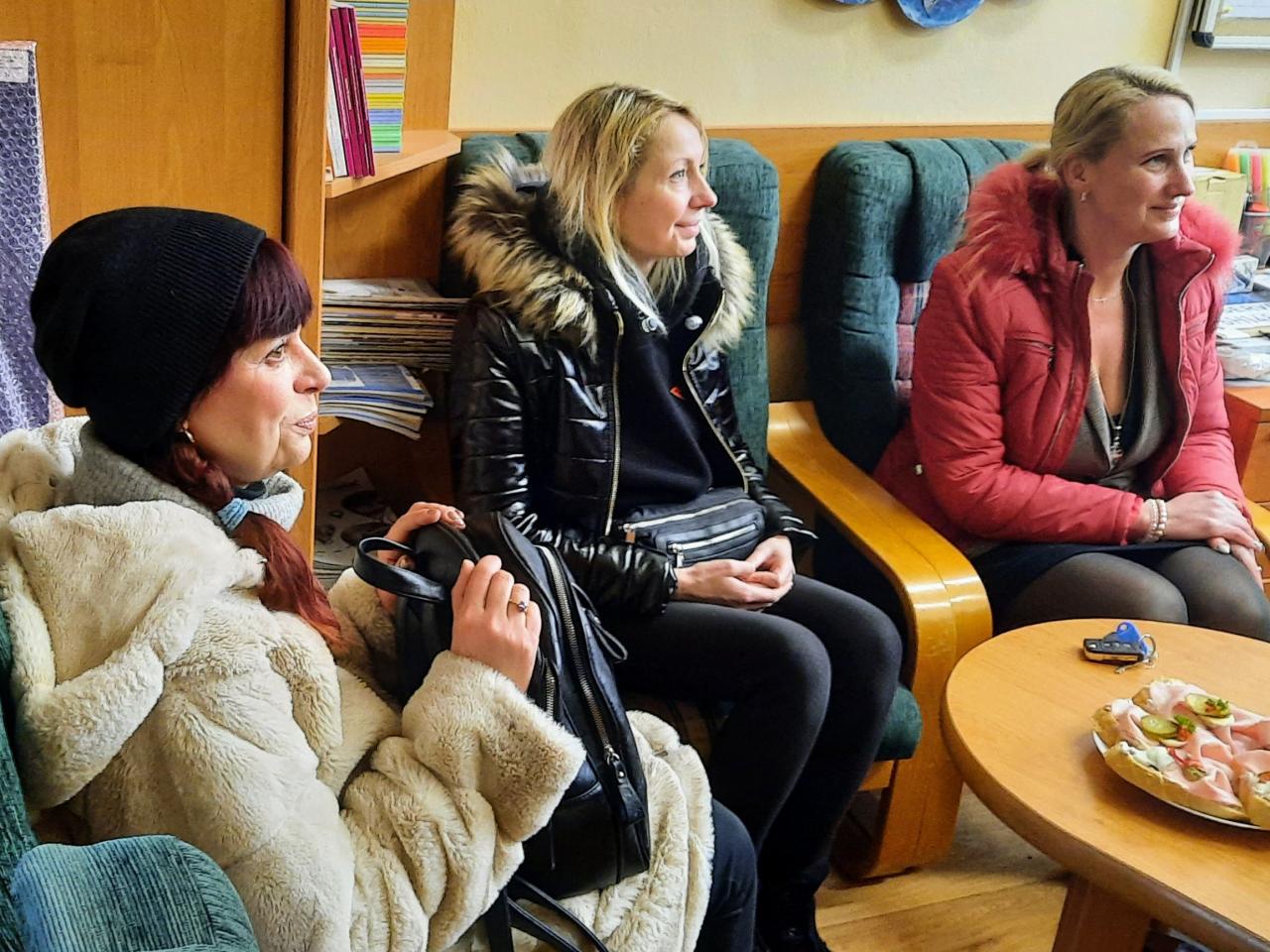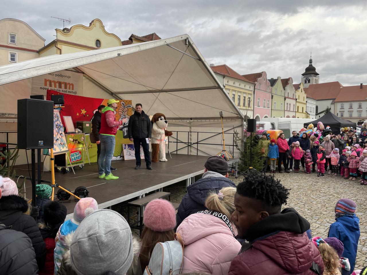 Kromě toho se na Husově náměstí objevilo hned několik stánků s nejrůznějšími pochutinami, nápoji a hračkami. Snad největší zájem byl potom o stánek, ve kterém měly ukrajinské maminky, ubytované v bývalém hotelu Metuj, připravenou ochutnávku tradičních ukrajinských pokrmů. Přestože byly jejich pokrmy nabízeny zcela zdarma, rozhodlo se jim mnoho návštěvníků přispět, a nakonec byla vybrána úctyhodná částka 7. 471 Kč. Tu se maminky z Ukrajiny rozhodly věnovat na dobrou věc a vybranými penězi podpořit MŠ a ZŠ speciální NONA v Novém Městě nad Metují. Dnes částku společně s vedením města předaly paní ředitelce Mileně Liskovské Turkové a nechyběl ani malý dárek od ukrajinských dětí, které žákům Nony poslaly své oblíbené bonbóny. Paní ředitelka potom všem představila prostředí školy, jednotlivé třídy a nikdo z přítomných nepromarnil příležitost pozdravit se s dětmi. Celou návštěvu výstižně shrnula jedna z přítomných ukrajinských maminek: „Je vidět, že tady jsou děti šťastné“