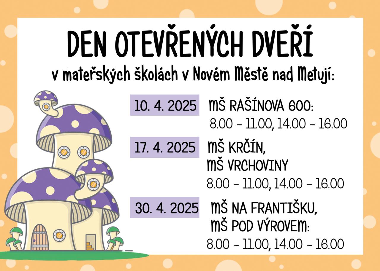 Dny otevřených dveří v mateřských školách budou v následujících termínech: