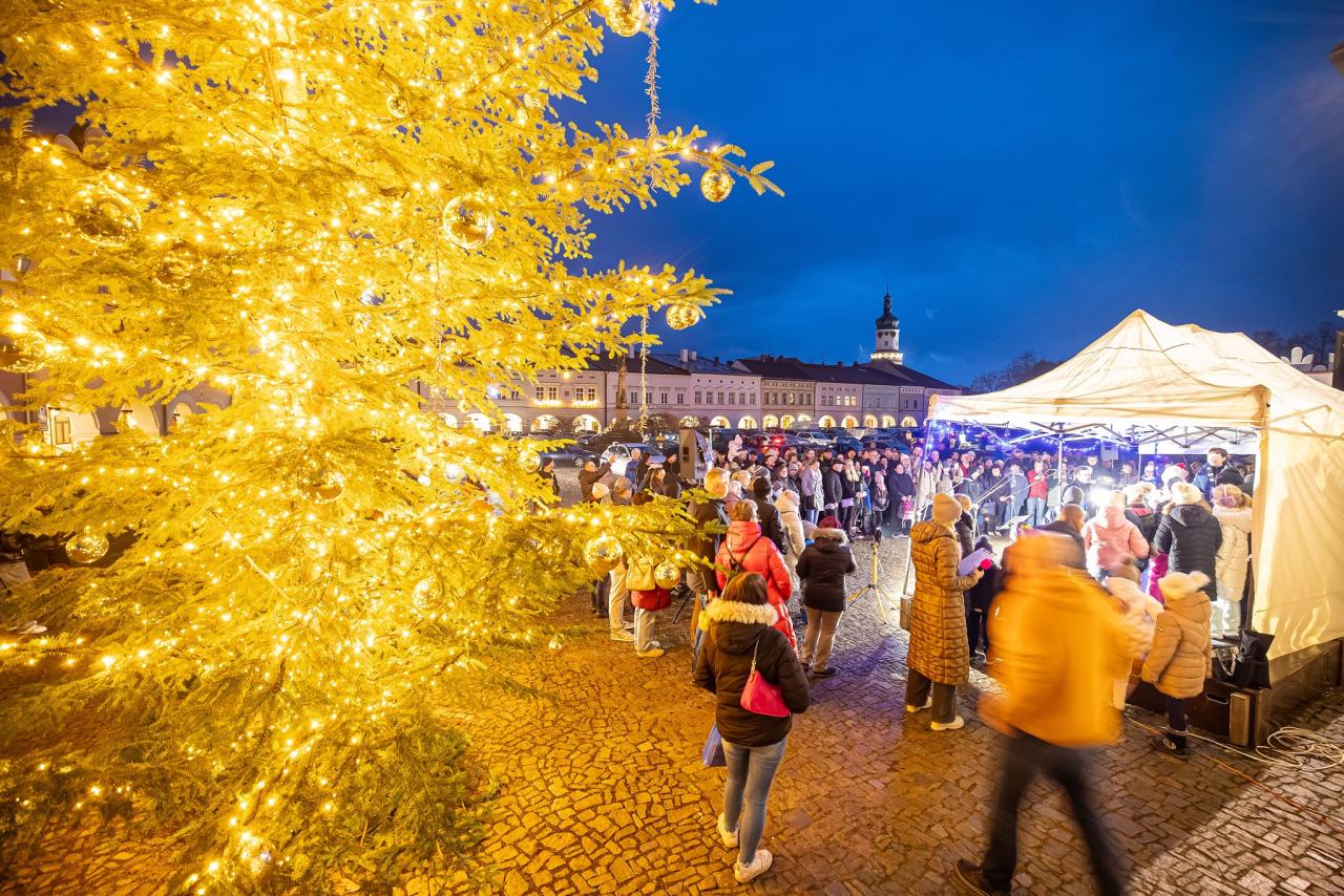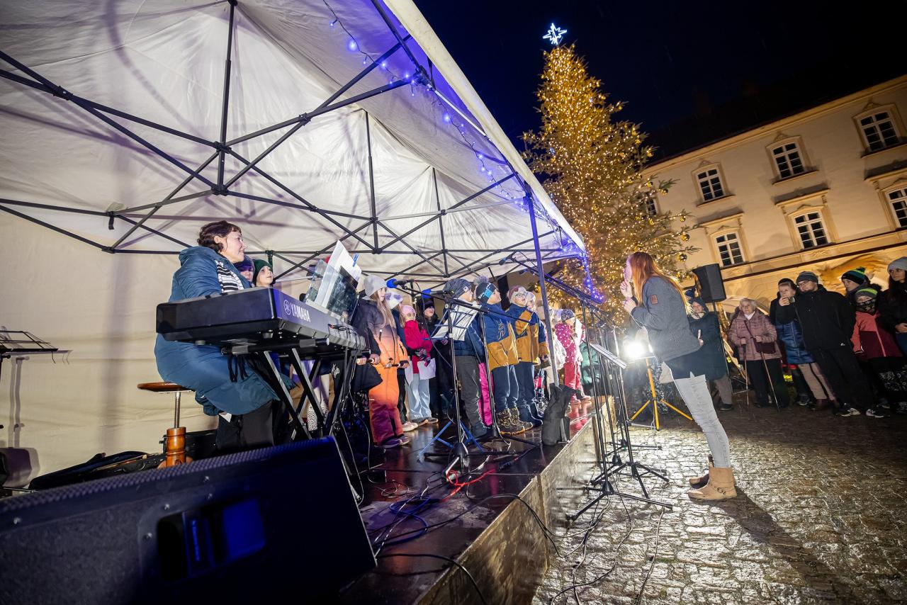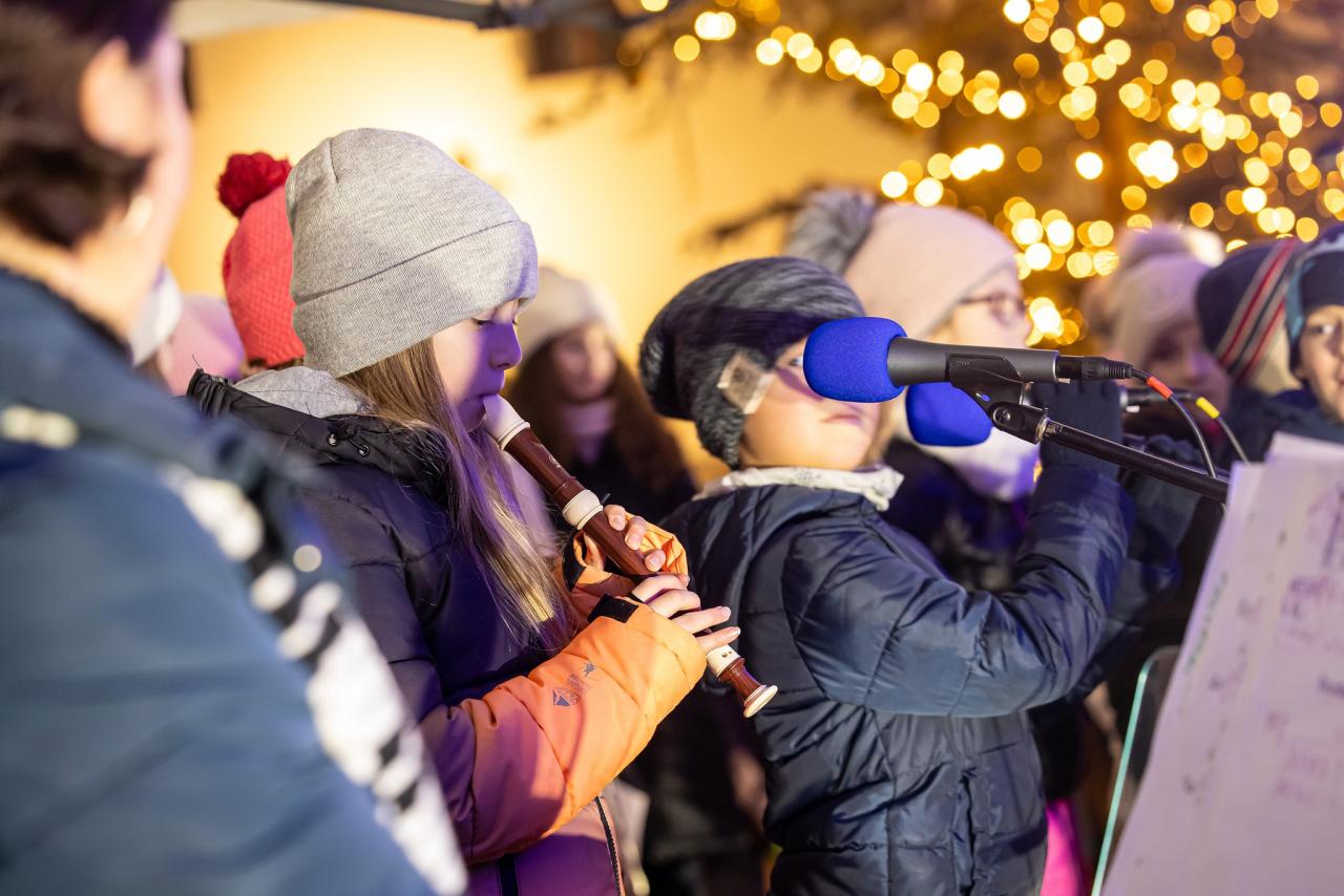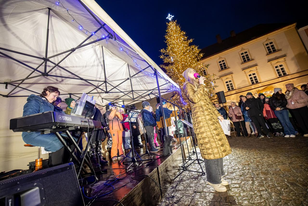Druhá adventní neděle přinesla krásný program plný hudby a vánoční atmosféry. Na náměstí vystoupili žáci ze Základní školy Krčín, kteří potěšili návštěvníky svým hudebním doprovodem.