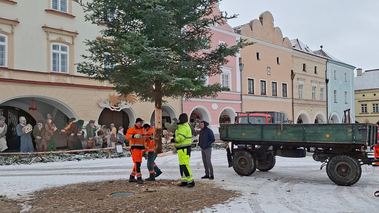 Důvodem letošního drobnějšího výběru vánočního stromu je nová základová konstrukce, která byla nezbytná pro bezpečné ukotvení stromu. Práce probíhaly v památkové zóně a vyžadovaly řadu povolení i koordinaci, aby vše bylo v souladu s ochranou kulturního dědictví.