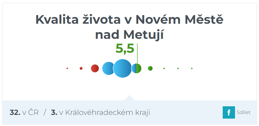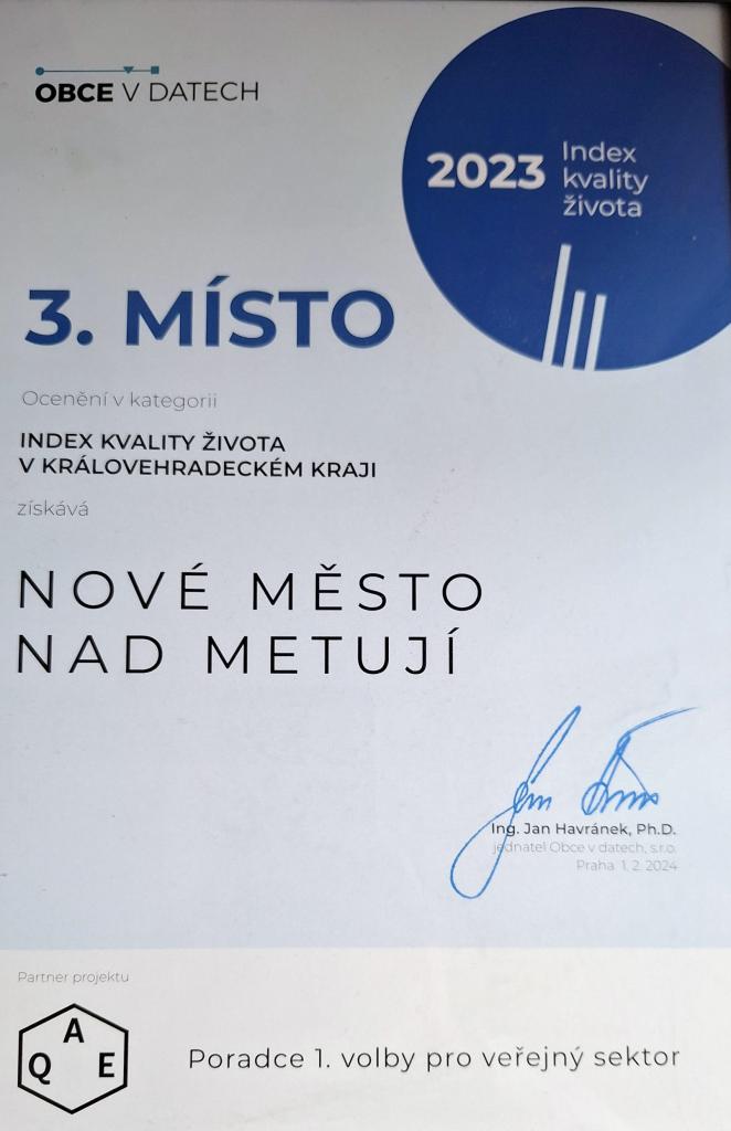 Kvalita života v Novém Městě nad Metují - 3. místo v KH kraji