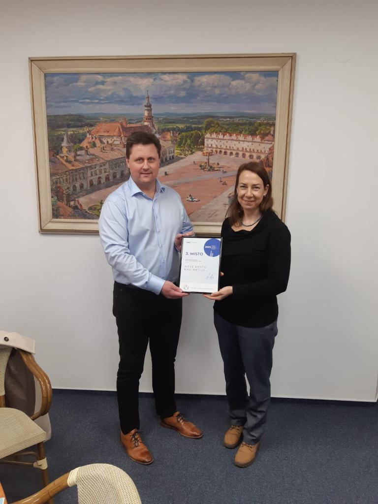 Nové Město nad Metují se umístilo na třetím místě v Královéhradeckém kraji, co se týče kvality života ve městě. Paní Irena Kratochvílová ze společnosti Obce v datech (www.obcevdatech.cz) včera předala na MěÚ NMnM starostovi ocenění za skvělé umístění v projektu. Do dalších kategorií, které byly hodnoceny můžete nahlédnout na tomto odkazu: