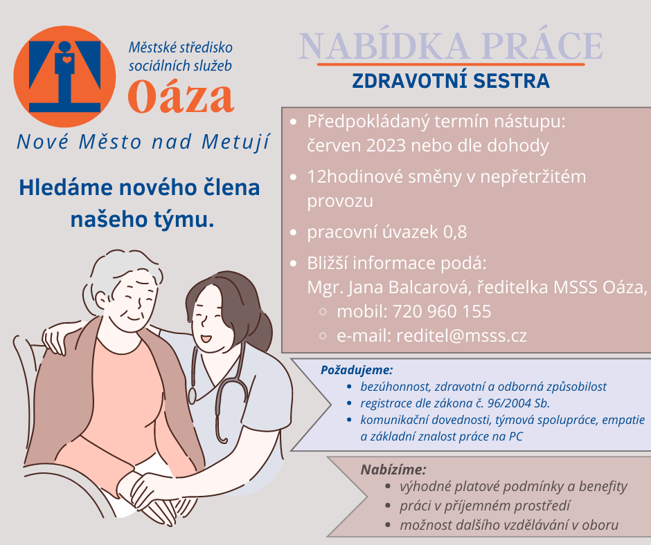 Bližší informace podá Mgr. Jana Balcarová, ředitelka MSSS Oáza, mobil: 720 960 155, e-mail: reditel@msss.cz.