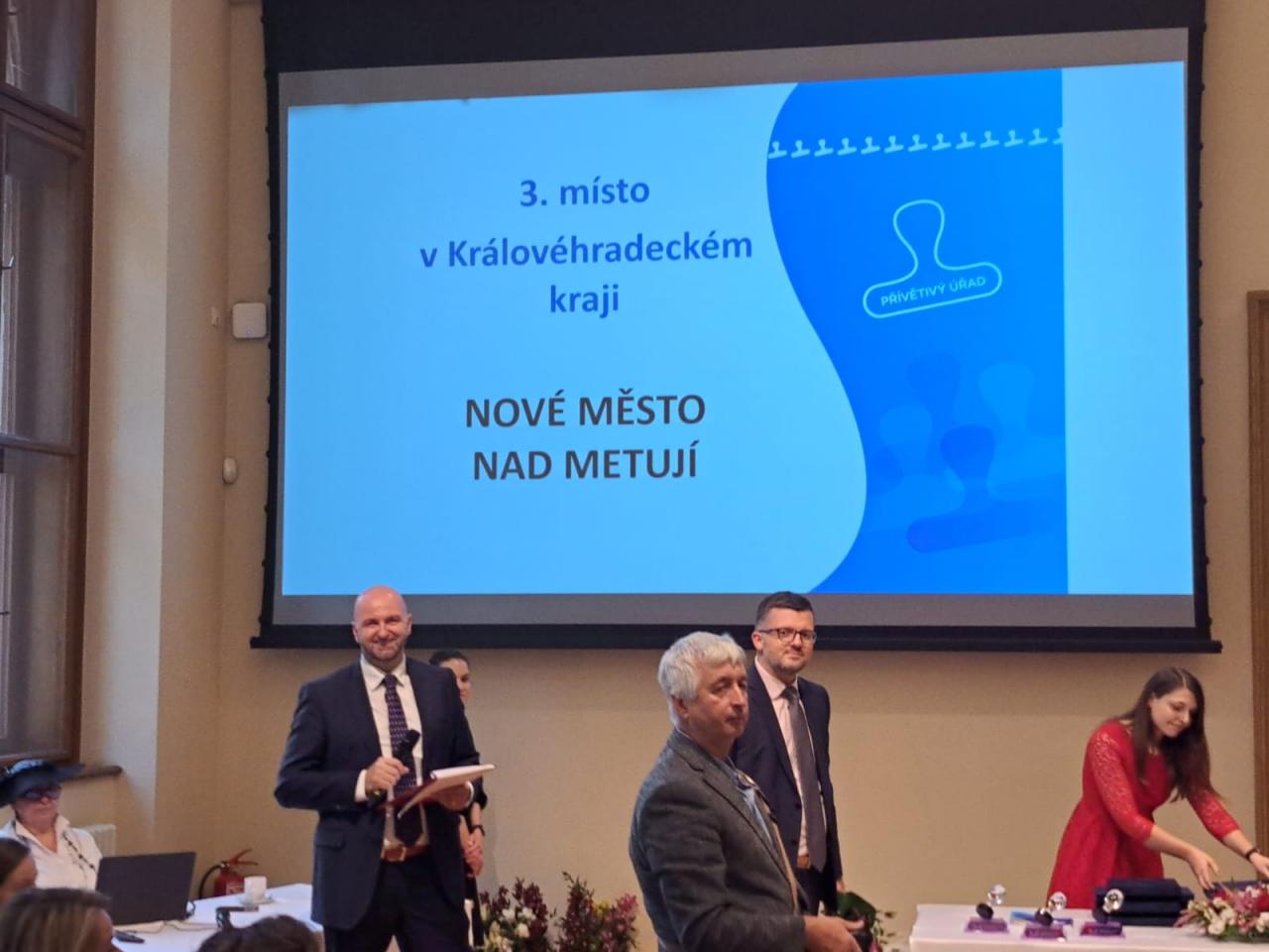 „Jednalo se o osmý ročník soutěže pod názvem Přívětivý úřad 2023. V letošním roce bylo hodnoceno celkem 130 úřadů obcí s rozšířenou působností a městských částí hlavního města Prahy. Celý projekt byl ze strany ministerstva doprovázen soutěží, ve které byly oceněny tři nejpřívětivější městské úřady z každého kraje a pak i tři celkoví vítězové, uvedl starosta Ing. Milan Slavík a dodává: „V rámci Královéhradeckého kraje jsme se umístili na třetím místě za druhým Jičínem a prvním Trutnovem. Jsem rád, že se nám v tak silné konkurenci po čtyřleté pauze podařilo opět dosáhnout na medailovou pozici.“
