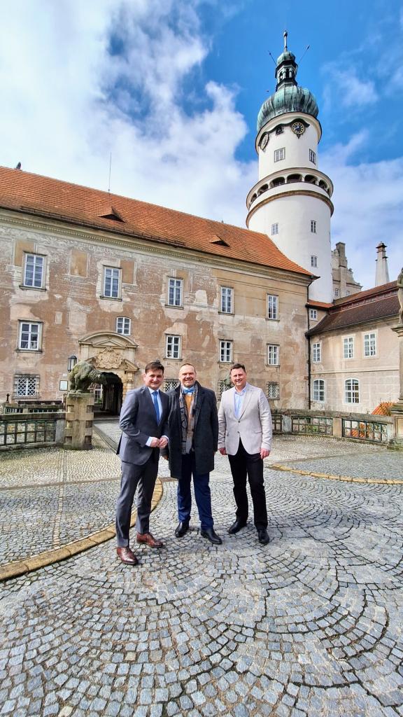 Novoměstský zámek ve čtvrtek 4. dubna navštívil ministr kultury Martin Baxa. V doprovodu hejtmana Martina Červíčka a starosty města Milana Slavíka se setkal s majiteli zámku a společně probrali význam této národní kulturní památky a pokračovali v jednání o jeho další budoucnosti.
