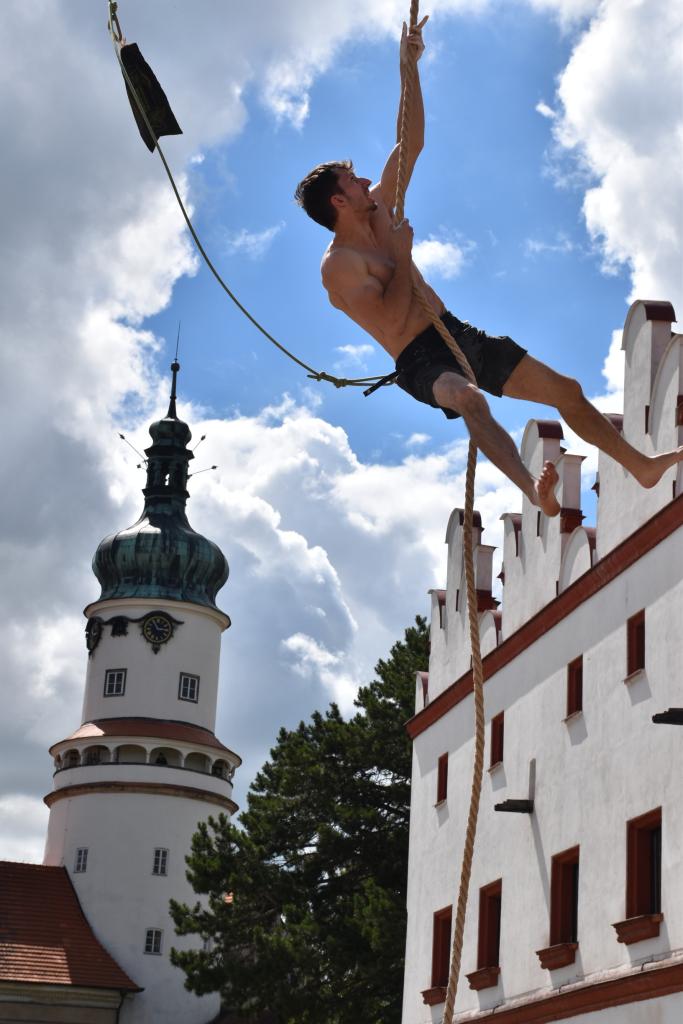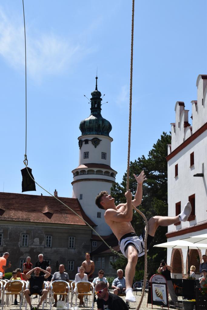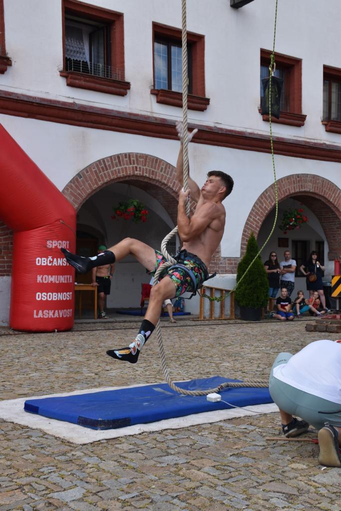 Diváci se tak mohou těšit na unikátní podívanou, kdy závodníci zdolávají lano pod širým nebem, vysoko nad Husovým náměstím. Extrémní výzva v podobě dvacetimetrového šplhu, zavěšeného na rameni mohutného jeřábu, posouvá fyzické i psychické limity sportovců na samotnou hranici lidských možností.