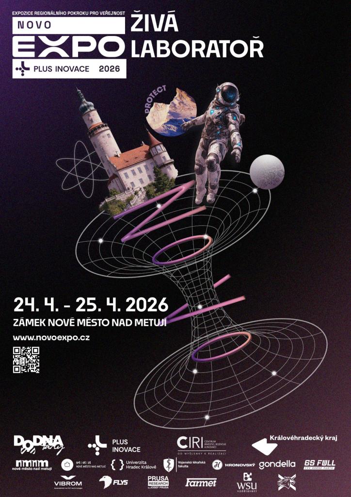Ve dnech 24. a 25. dubna 2026 se areál Zámku Nové Město nad Metují promění v centrum inovací, technologií a kreativního myšlení. Uskuteční se zde NOVO EXPO ŽIVÁ LABORATOŘ 2026, výjimečná expozice regionálního pokroku určená široké veřejnosti.