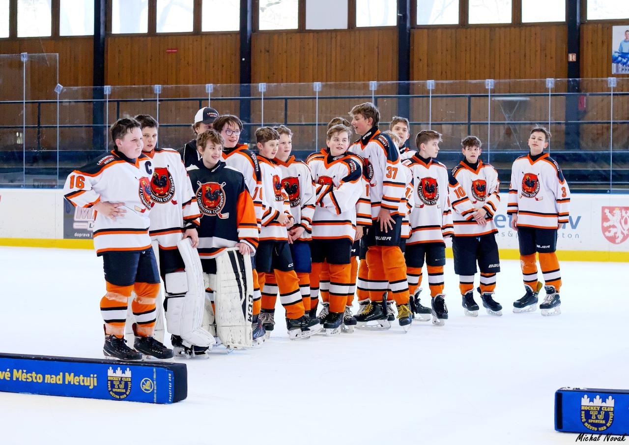 Zimní stadion v Novém Městě nad Metují hostil v sobotu 5. dubna 2025 napínavý turnaj starších žáků, ve kterém se s domácím TJ Spartak Nové Město nad Metují utkaly týmy Kutné Hory, České Třebové a Třince.