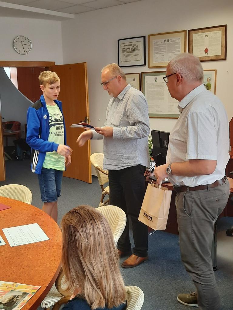 Dnes odpoledne se u pana starosty sešli mladí fotografové z fotokroužku při ZŠ Malecí, kteří pod vedením paní Evy Vincencové získali za uplynulý rok mnoho významných cen. Někteří z nich dokonce svými fotografickými dovednostmi předčili starší nebo dokonce dospělé kolegy a sklidili úspěch i na mezinárodní úrovni. Pan starosta Petr Hable s panem místostarostou Liborem Hovorkou fotografům za vzornou reprezentaci školy a města poděkovali a předali jim drobné dárky.