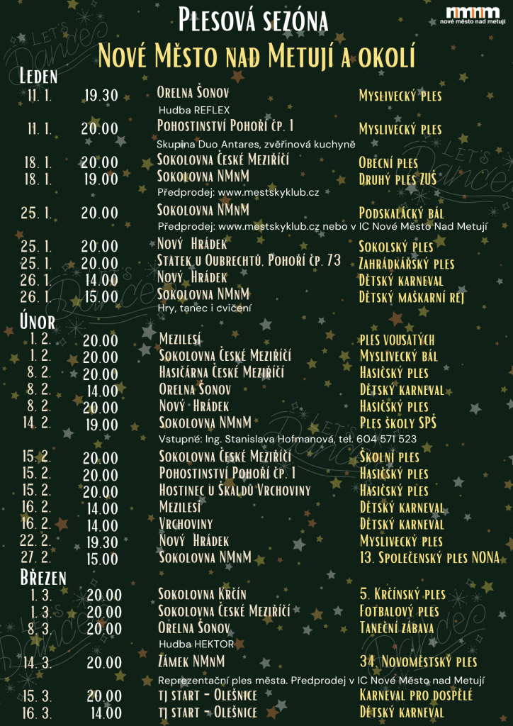 Plesová sezóna v Novém Městě nad Metují a okolí