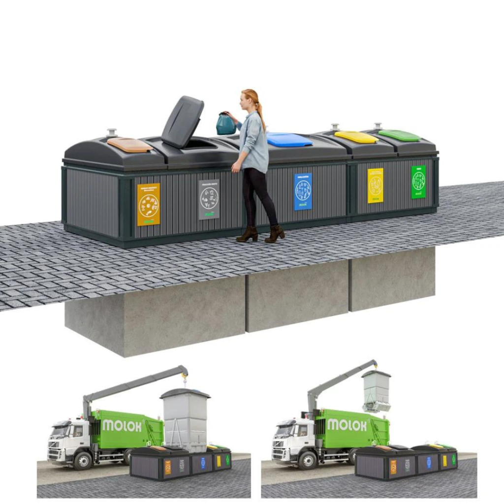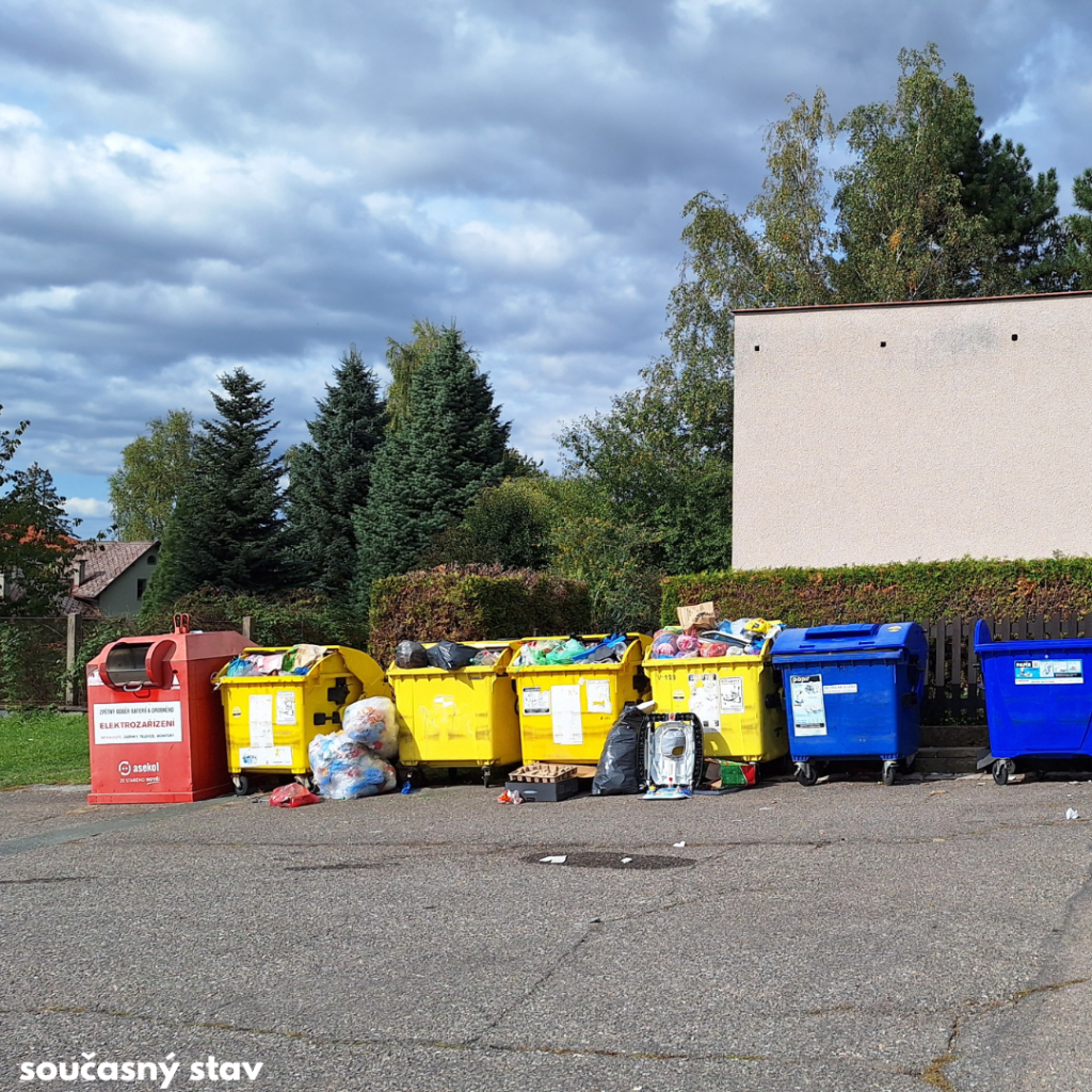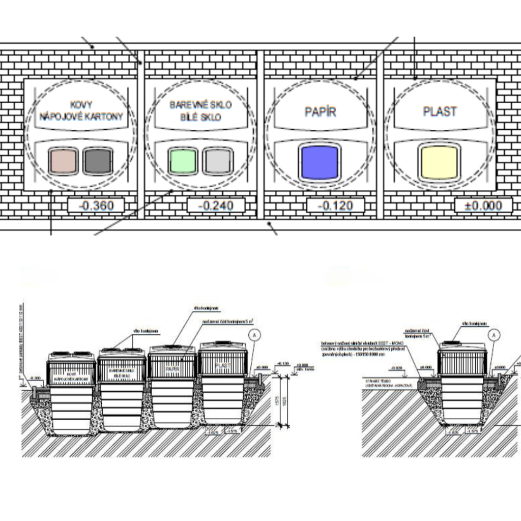 Stanoviště bude obsahovat celkem 4 ks polozapuštěných kontejnerů, z nichž bude mít každý kapacitu 5 m3. Kontejnery budou rozděleny na třídění papíru, plastů, barevného a bílého skla, kovového odpadu a nápojových kartonů.