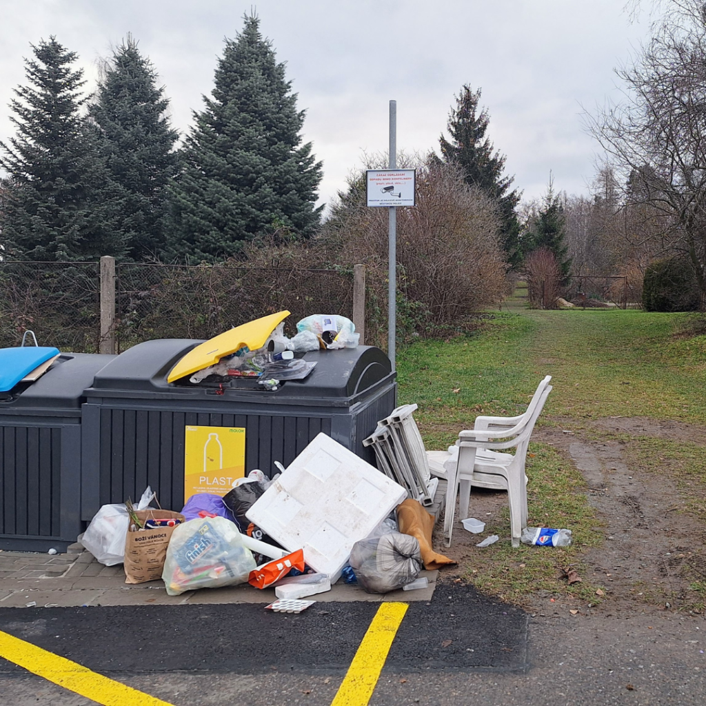 - Papírový odpad odložený mimo kontejner komplikuje třídění odpadu všem zodpovědným obyvatelům, kteří se ke kontejnerům ani nedostanou.