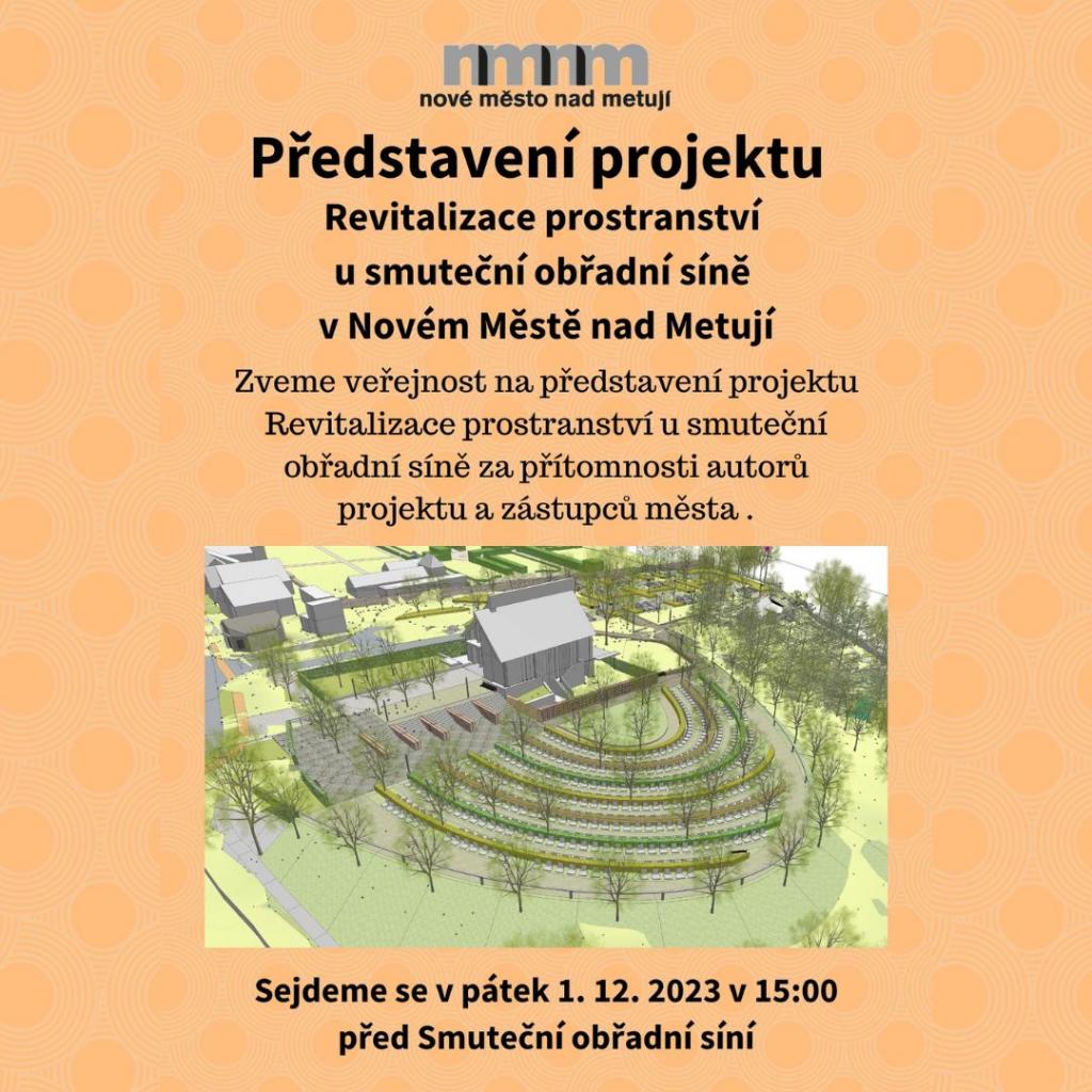 Zveme veřejnost na představení projektu Revitalizace prostranství u smuteční obřadní síně za přítomnosti autorů projektu a zástupců města .