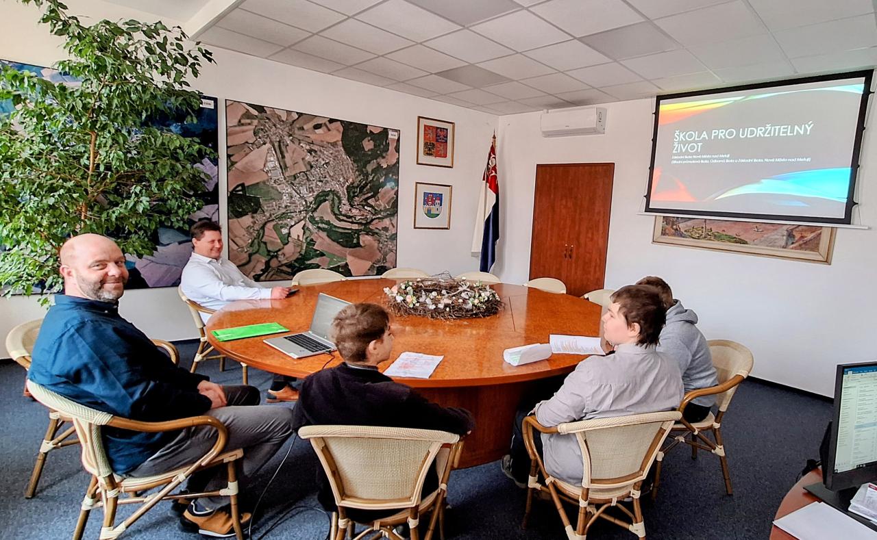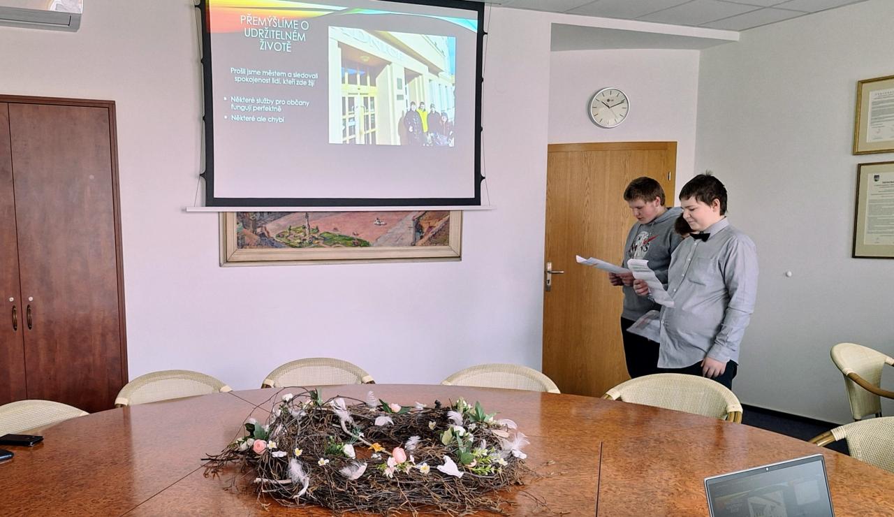 Prezentace Škola pro udržitelný život a následná diskuze zahrnovala mnoho zajímavých nápadů žáků, např. solární lavičky, infotabule u kaple sv. Jana Nepomuckého, nebo vodní prvek na Husově náměstí. Prezentace byla zpracována v rámci programu Active Citizens Fund a projektu "Mladí pro klima II".