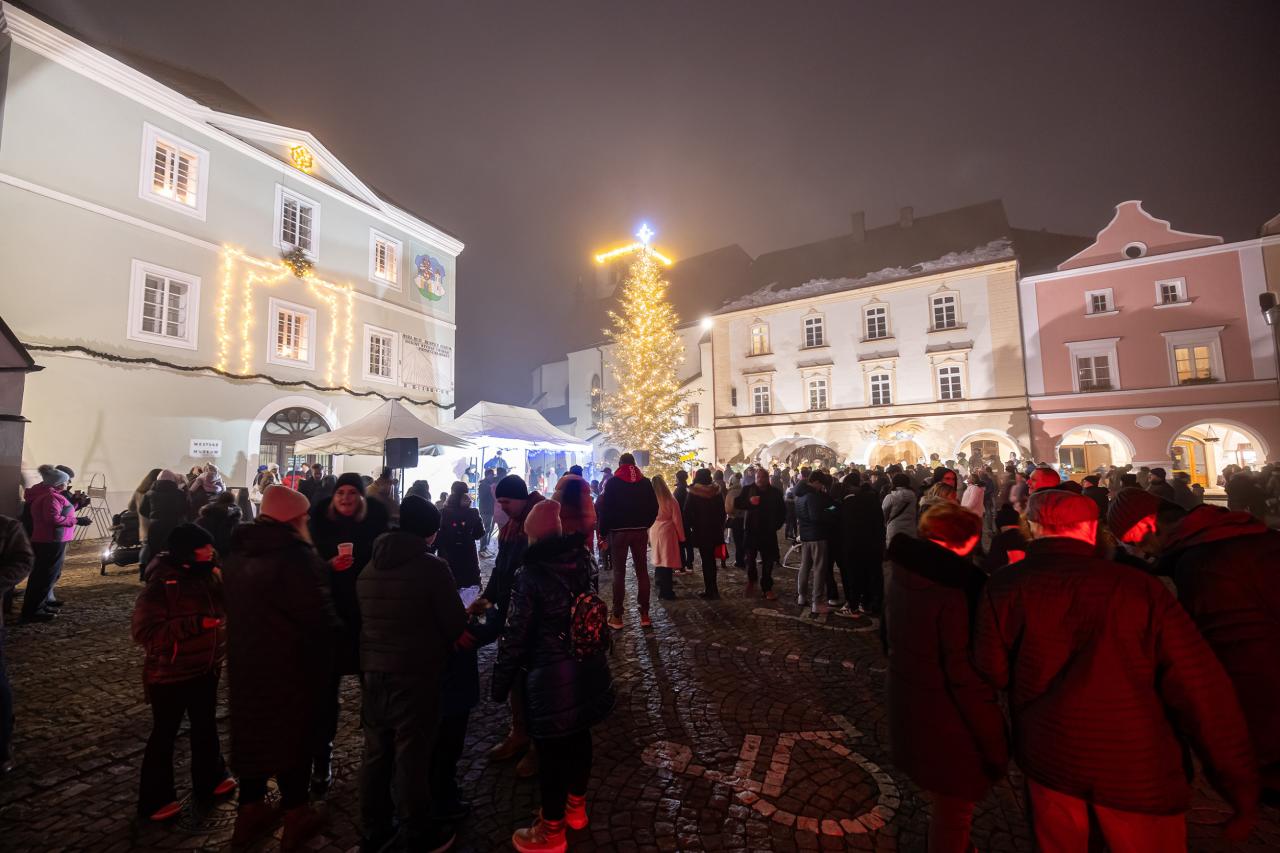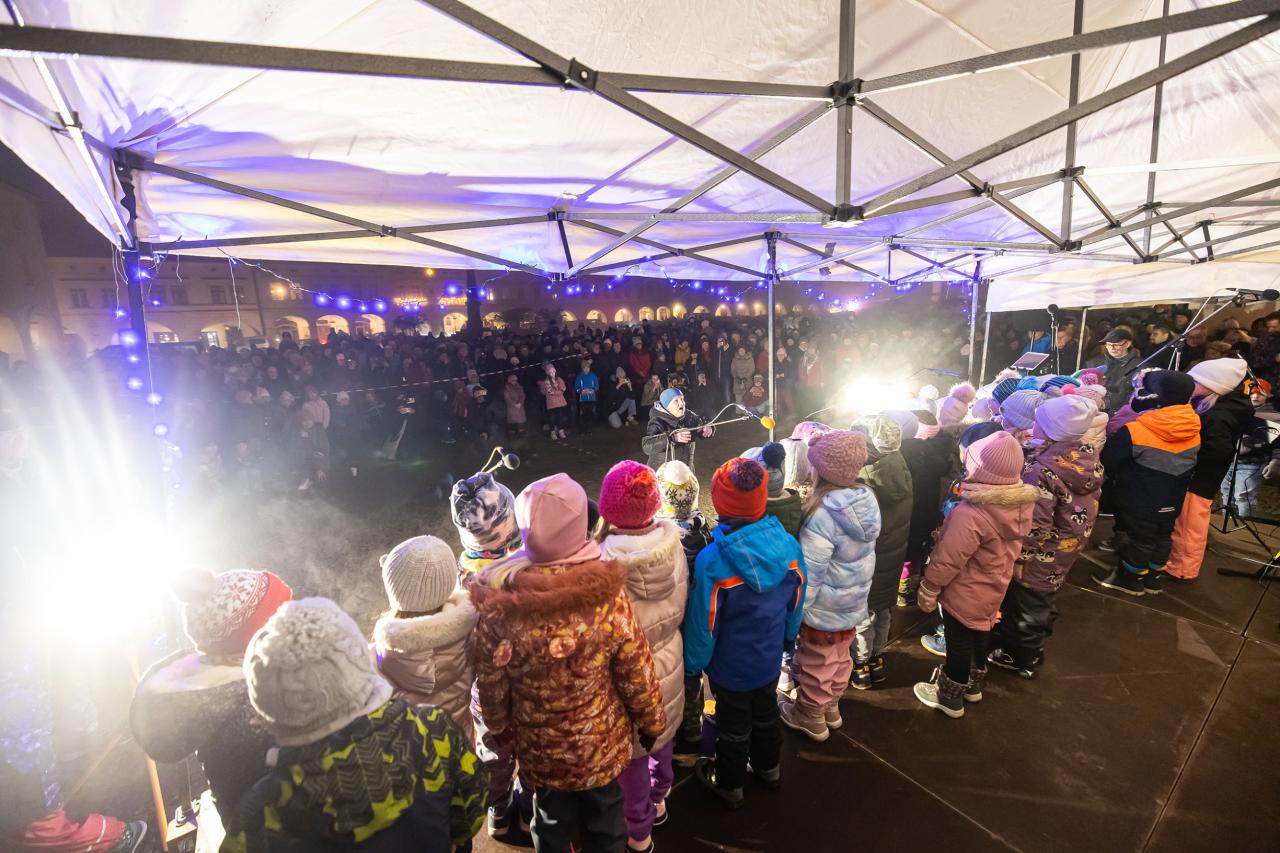 Na náměstí se sešli obyvatelé i návštěvníci, aby společně zahájili adventní čas. Program zahájily děti z MŠ Rašínova svým zpěvem, poté jsme slavnostně rozsvítili vánoční strom. Náměstím se linula vůně svařeného vína, punče a sladkých dobrot, které dotvářely příjemnou atmosféru.