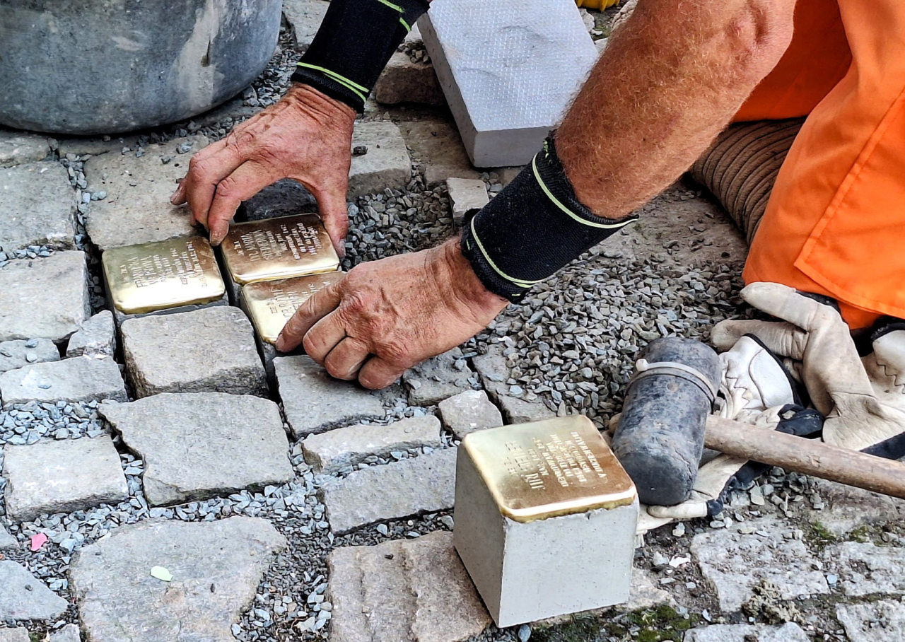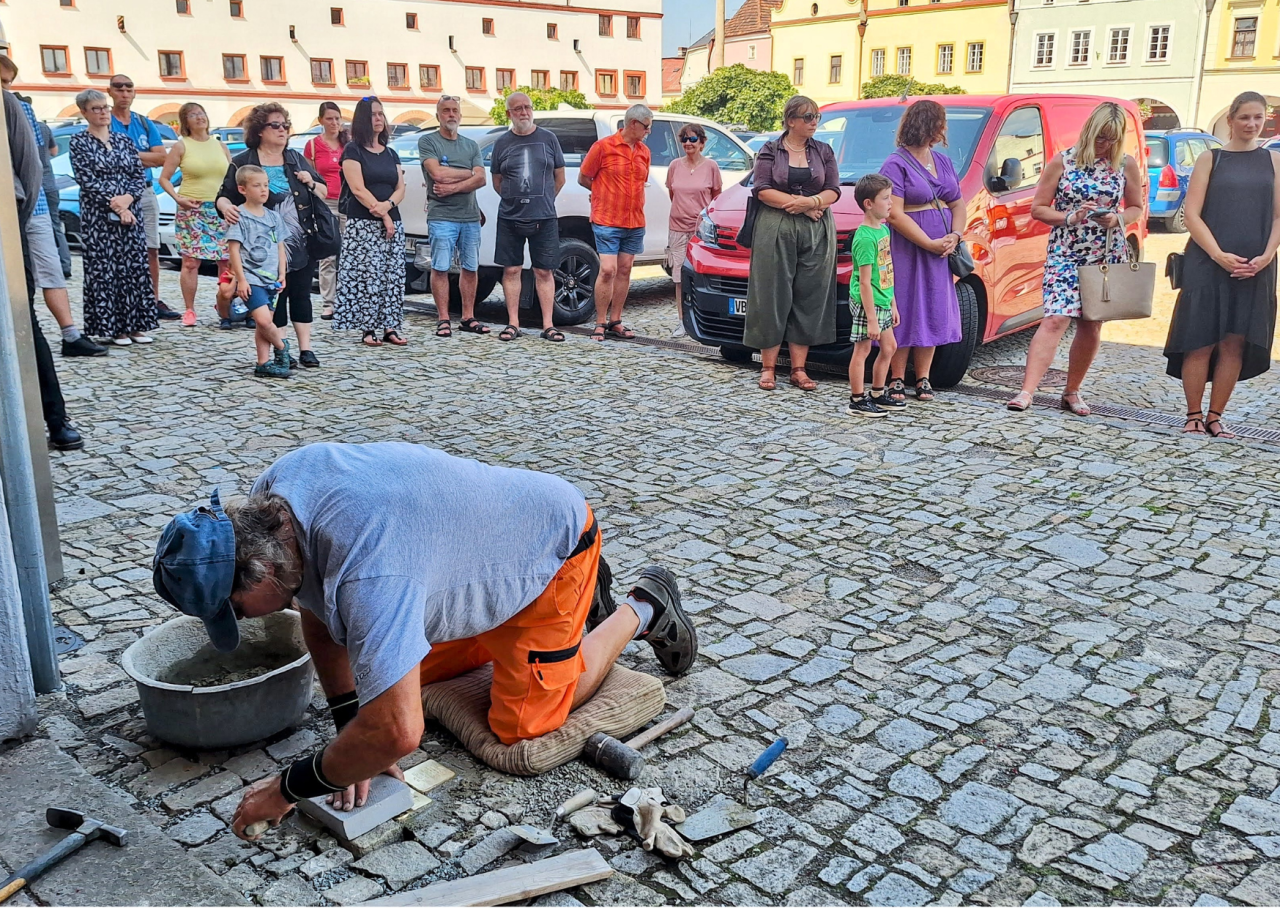 Zásluhu na položení prvních kamenů zmizelých v našem městě má Michael Steiner Borek, fotograf, překladatel, a především potomek rodiny Steinerů, který se slavnostního aktu zúčastnil společně se svou ženou. Spolu s nimi byli přítomni zástupci města, kantor Židovské obce v Praze Daniel Vaněk a ředitel Památníku Terezín PhDr. Jan Roubínek. Kameny jsou usazeny ve třech řadách, které symbolicky znázorňují tři generace rodiny Steinerů.