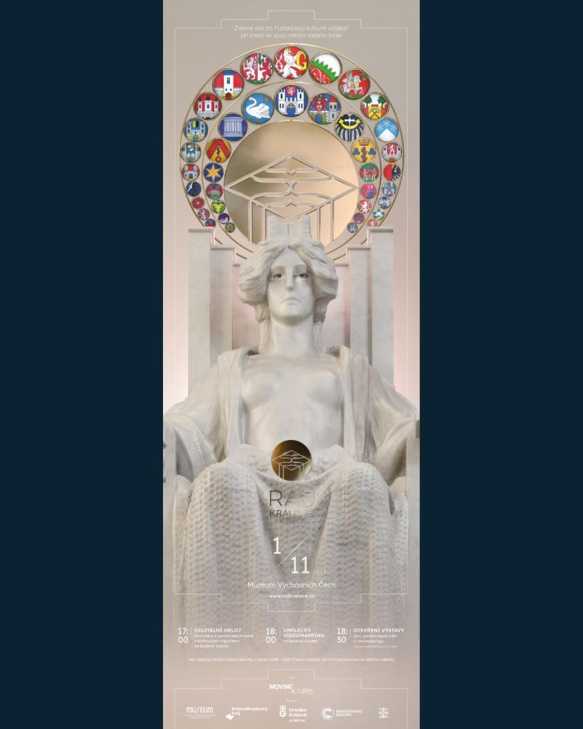 Vyvrcholením večera bude umělecký videomapping s názvem RÁJ KRÁLOVÉ, který rozpohybuje sochy na budově muzea a nabídne vizuální cestu historií kraje. Projekt připravil tým MOVING PICTURES, který do tvorby zapojil i studenty hořické Střední uměleckoprůmyslové školy.