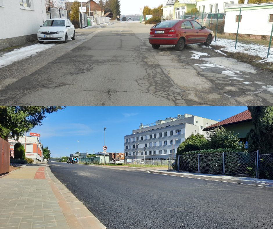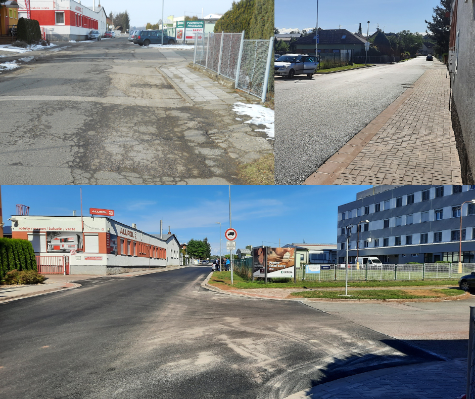 Stávající chodníky byly vydlážděny zámkovou dlažbou a rozšířeny na šířku 1,5 m, zároveň vznikl také chodník nový vedoucí od firmy Alurol do ulice Stavební. Ten, společně s novým veřejným osvětlením, zajistí bezpečný pohyb chodců v průmyslové části ulice. Na závěr byl v celé délce komunikace položen nový asfaltový povrch.