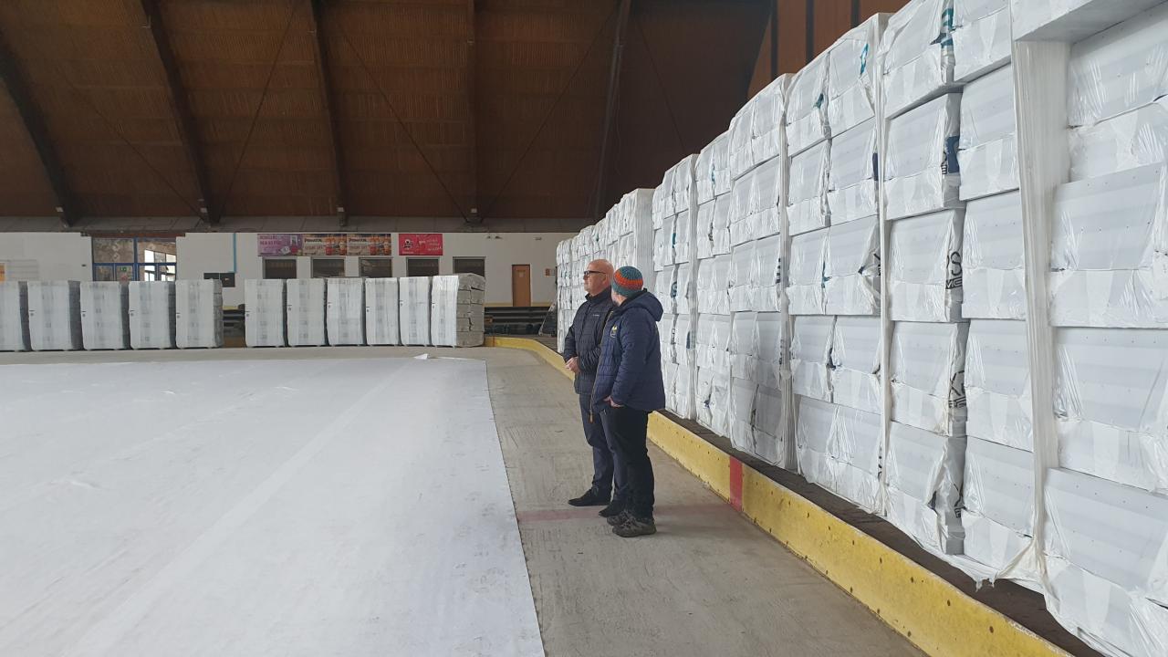 Místostarosta města Aleš Vrátný spolu s vedoucí Oddělení školství, kultury a sportu Ivetou Habrovou dnes navštívili novoměstský zimní stadion, kde právě probíhá kompletní rekonstrukce lední plochy, strojovny a technického zázemí stadionu. Kromě probíhajících stavebních prací prověřili také výdaje na rekonstrukci.