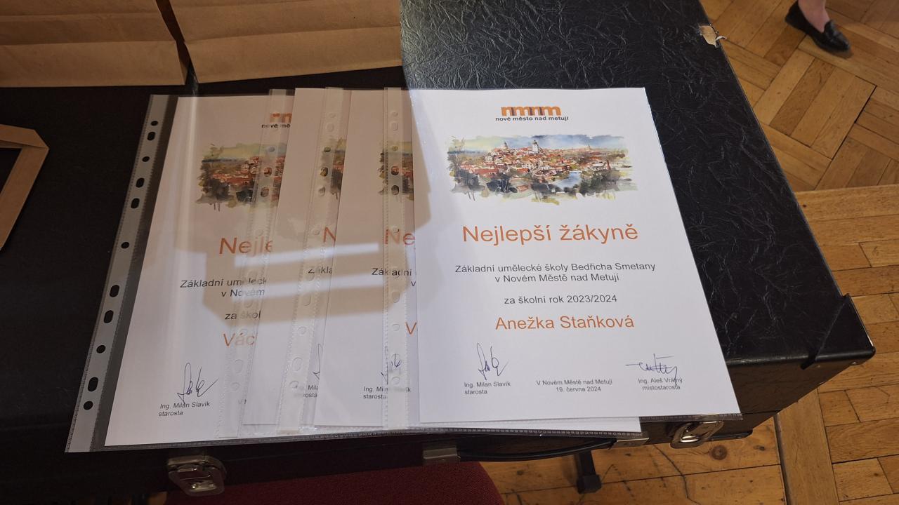 Ještě před zakončením školního roku 2023/2024 se ve středu 19. června 2024 konalo už tradiční slavnostní ocenění nejlepších žáků novoměstských základních škol a novoměstské ZUŠky.