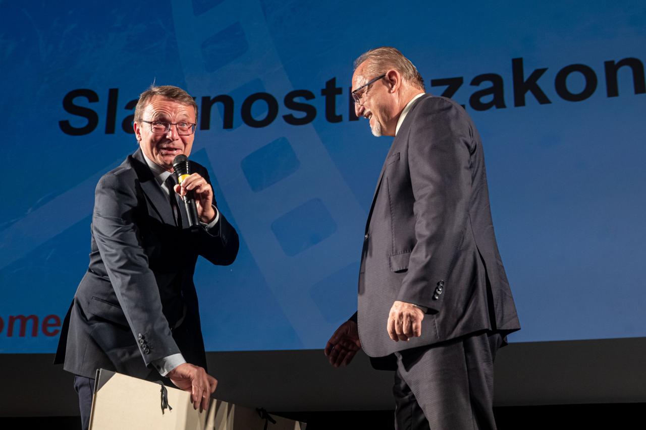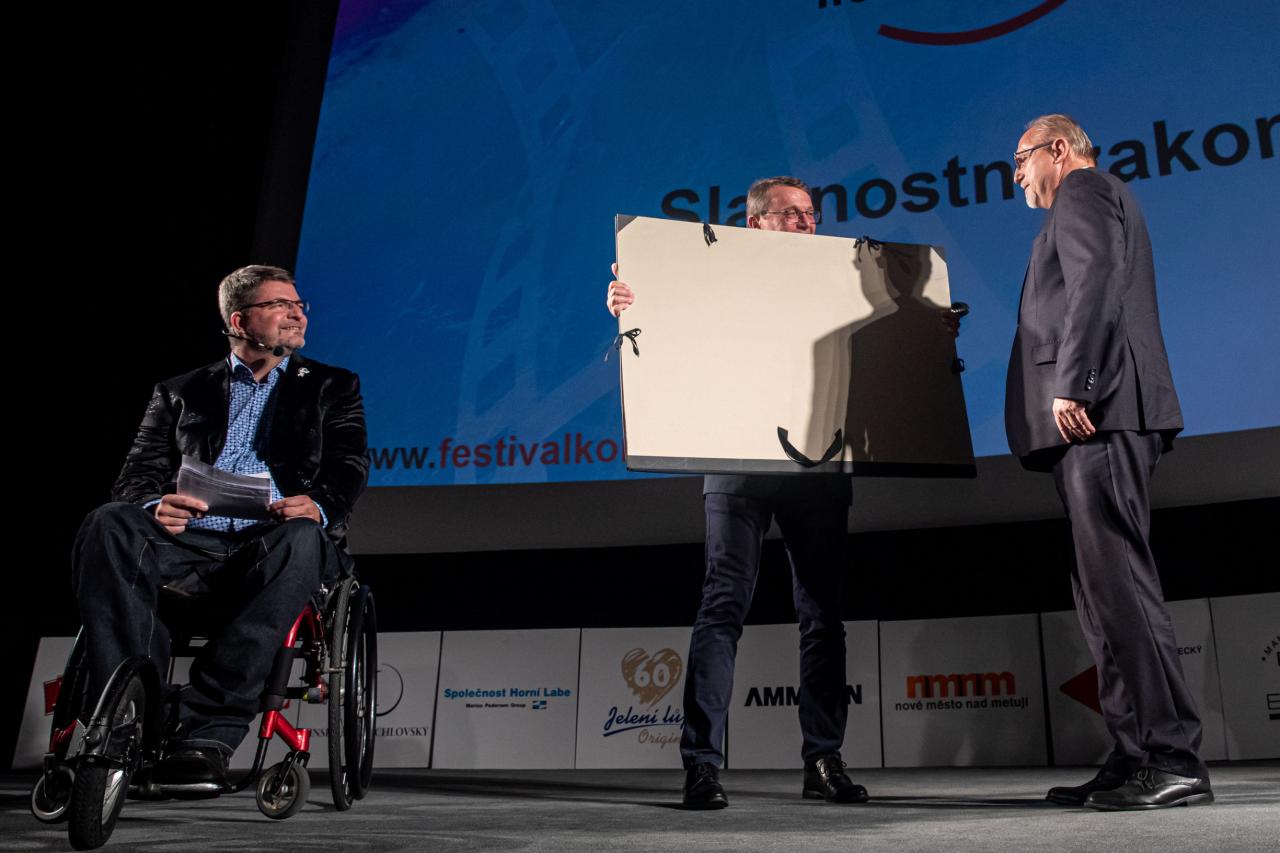 Během závěrečného slavnostního večera Festivalu české filmové komedie převzal za naše město starosta Petr Hable soubor děl novoměstského rodáka, českého malíře a grafika pana Vladimíra Suchánka, které mu osobně předal syn pana Suchánka pan MgA. Martin Suchánek.