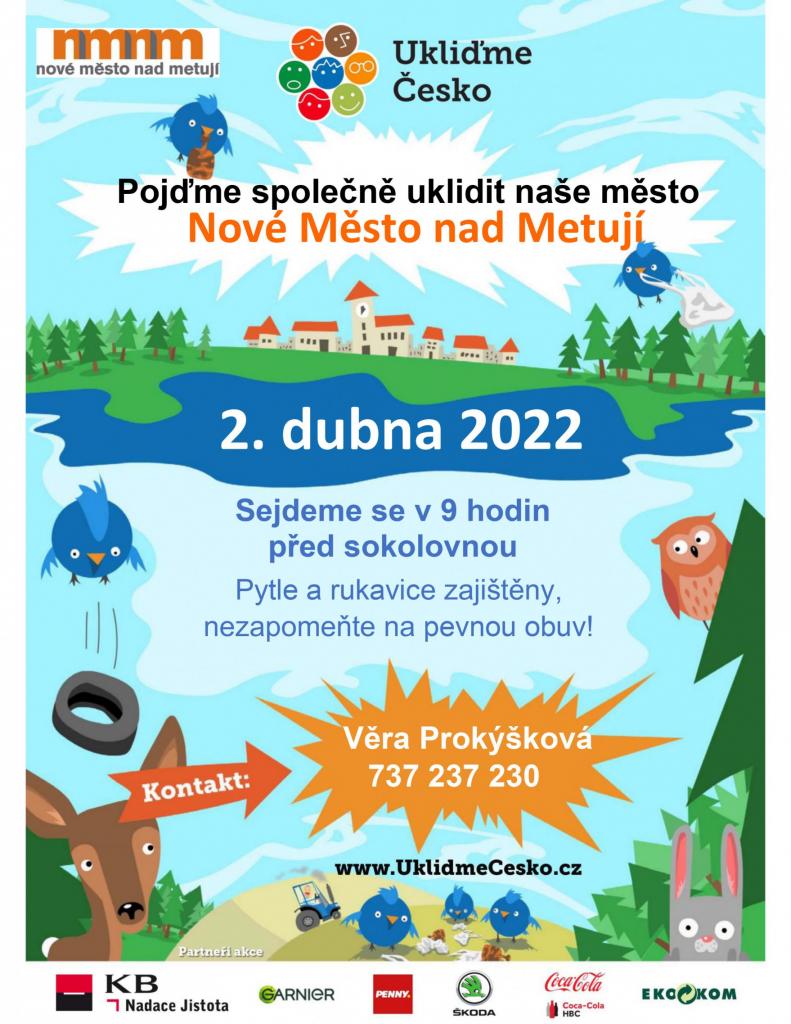Po roce se naše město opět připojí k celorepublikové akci "Ukliďme Česko", která se koná v sobotu, 2. dubna 2022 od 9.00 hod. do 12.00 hod. Zapojte se s námi do této akce a pojďte uklidit různá místa našeho města.