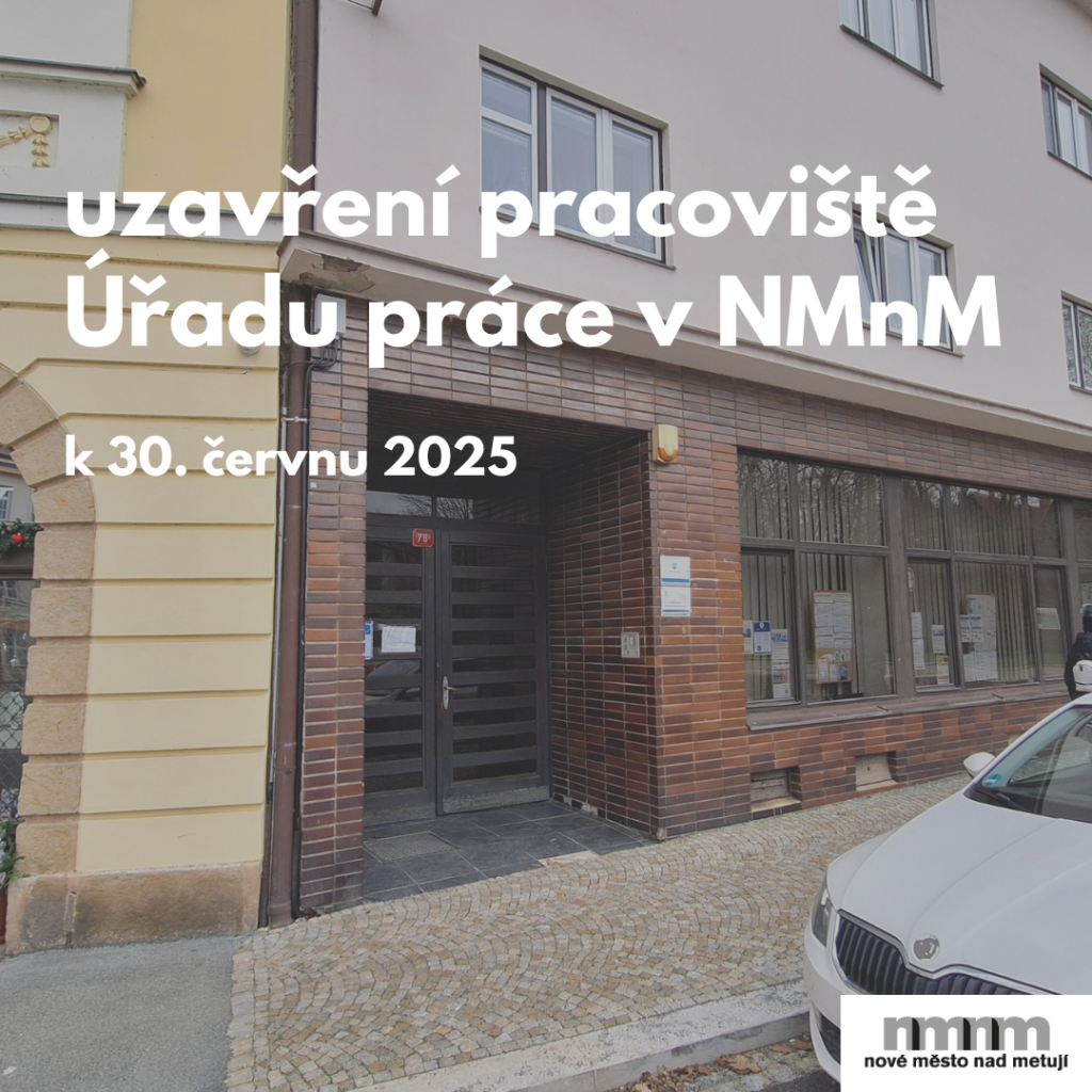 v rámci transformace Úřadu práce ČR bylo rozhodnuto o uzavření detašovaného pracoviště Úřadu práce v Novém Městě nad Metují. Toto rozhodnutí bohužel není v silách města žádným způsobem ovlivnit.