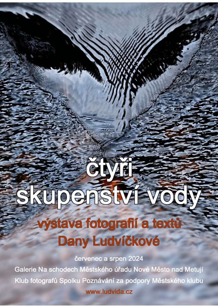 Dana Ludvíčková Ludvida bude v Galerii Na schodech vystavovat už počtvrté. Tentokrát to budou fotografie vody ve všech jejích podobách s podtitulem „Pohádky nelžou. Živá a mrtvá voda existují.“ Výstava bude probíhat v červenci a v srpnu. Otevřeno v pracovní době Městského úřadu.