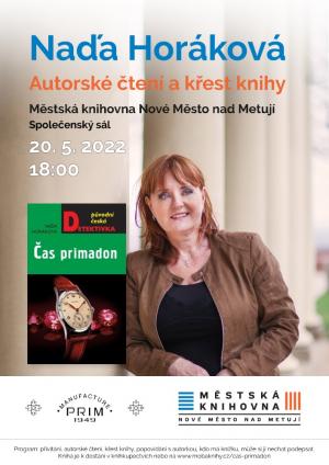 Zveme vás na setkání s autorkou detektivních a historických knížek. Její novinka Čas primadon uvádí do děje i novoměstské náramkové hodinky!