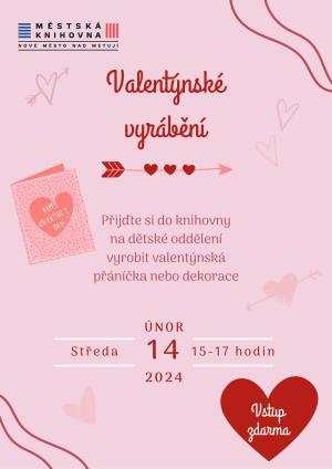 Přijďte si ve středu 14 února od 15 do 17 hodin do knihovny na dětské oddělení vyrobit valentýnská přáníčka nebo dekorace.