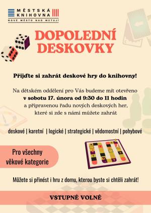 Na dětském oddělení pro vás budeme mít připravenou řadu nových deskových her, které si zde s námi můžete zahrát.