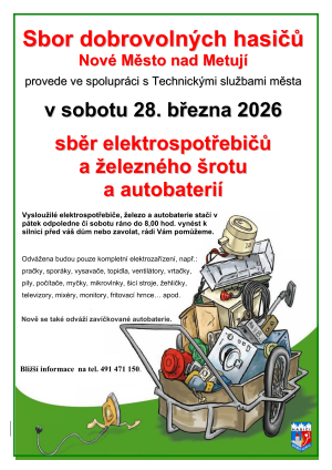 Sbor dobrovolných hasičů s Technickými službami opět provedou tradiční sběr železného šrotu a vysloužilých elektrospotřebičů viz plakát.