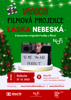 S koncertem originální hudby z filmu - NOFI. Sobota 27. 12. 2025 od 19 hodin v Kině 70. Vstupenky na www.festivalkomedie.cz a www.kino70.cz