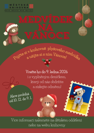 Půjčte si v knihovně plyšového medvídka a užijte si s ním Vánoce! Akce pro děti probíhá od 10.12. do 9.1.