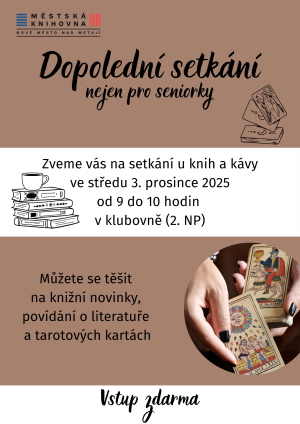Setkání u knih a kávy ve středu 3. prosince od 9 do 10 hodin. Více informací na plakátu.