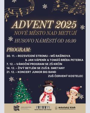 Srdečně vás zveme na adventní trhy na prodejně Merkur na Husově náměstí 1218 v Novém Městě nad Metují. Přijďte si užít sváteční atmosféru, nakoupit vánoční cukroví, dekorace, výrobky žáků a ochutnat svařené víno či další dobroty. PŘESNÉ TERMÍNY A ČASY PRODEJE NALEZNETE NA PLAKÁTU.