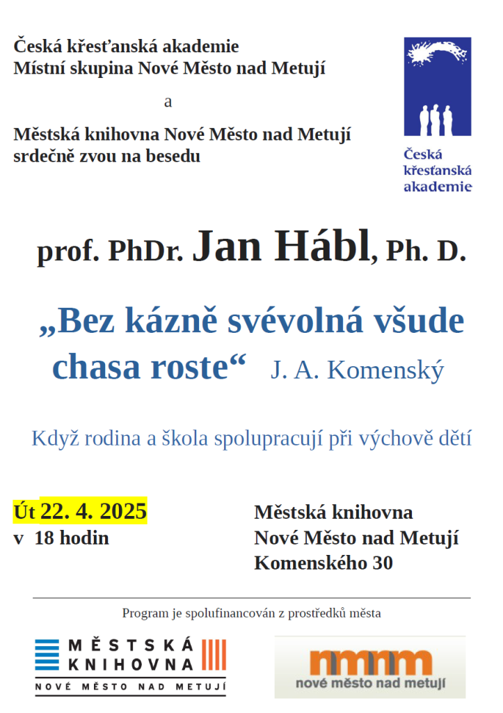 Pořádá Česká křesťanská akademie a Městská knihovna Nové Město nad Metují