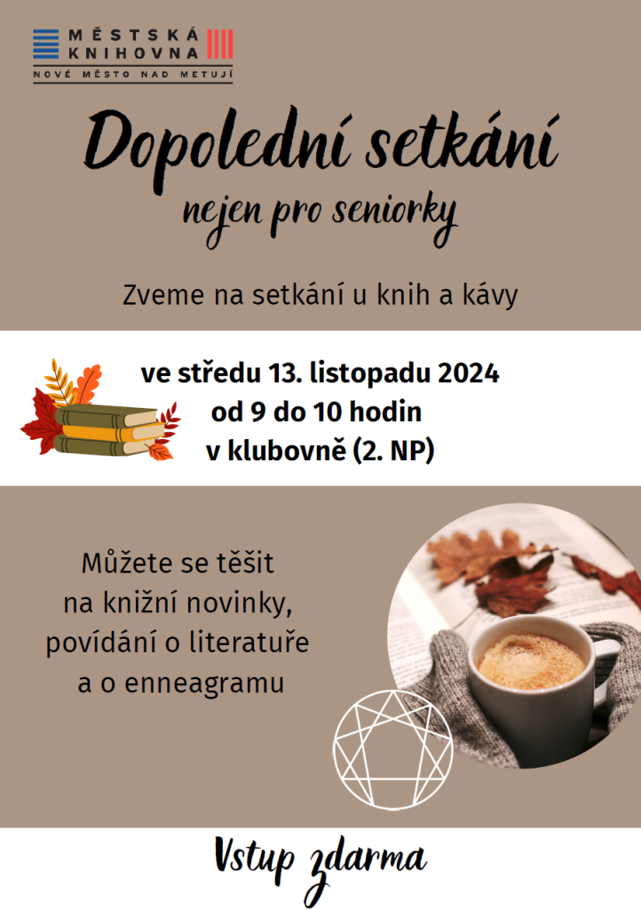 Můžete se těšit na knižní novinky, povídání o literatuře a enneagramu. Vstup zdarma.