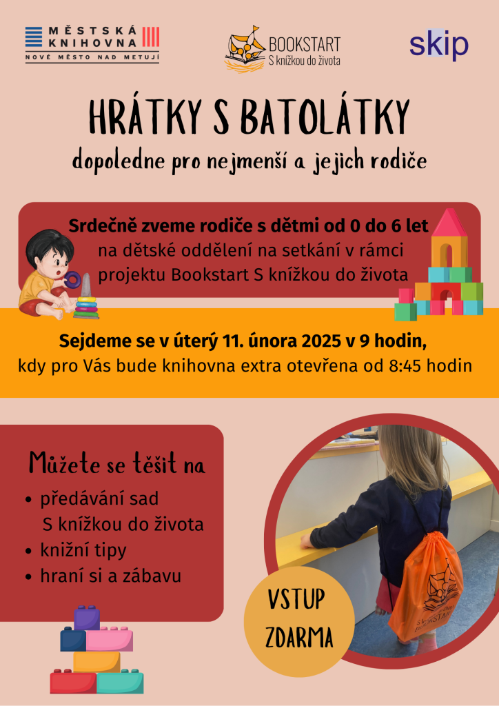 Předávání sad S knížkou do života, knižní tipy, hraní si. Setkání v rámci projektu Bookstart S knížkou do života.