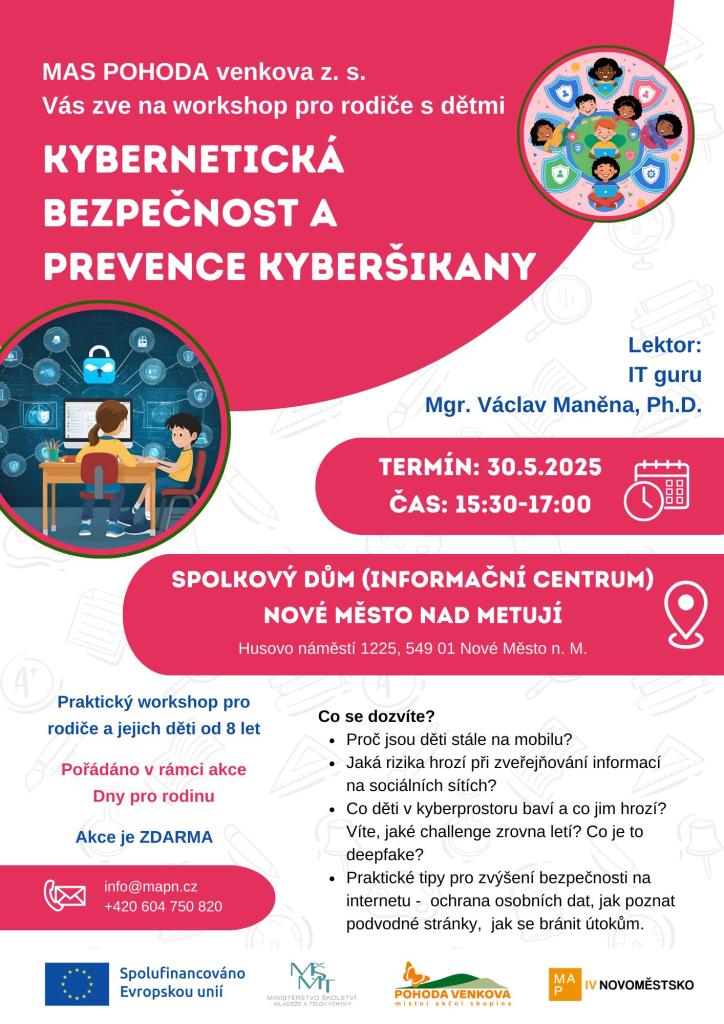 Program na Dny pro rodinu v Novém Městě nad Metují máme také připraven! Zůstáváme v IT světě a zveme všechny rodiče a jejich děti na workshop s IT guru Václavem Maněnou. Těšíme se na vás 30.5.2025 ve Spolkovém domě od 15:30 .