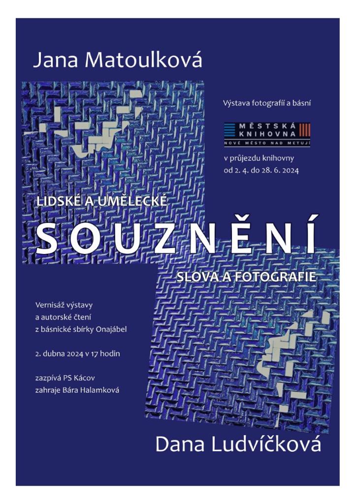 Vernisáž proběhne 2. 4. 2024 od 17 hod. Vystoupí pěvecký sbor Kácov a na klávesy zahraje Bára Halamková.